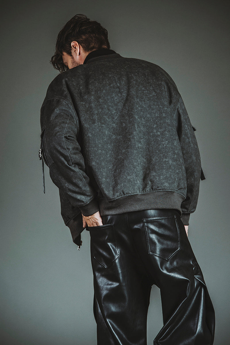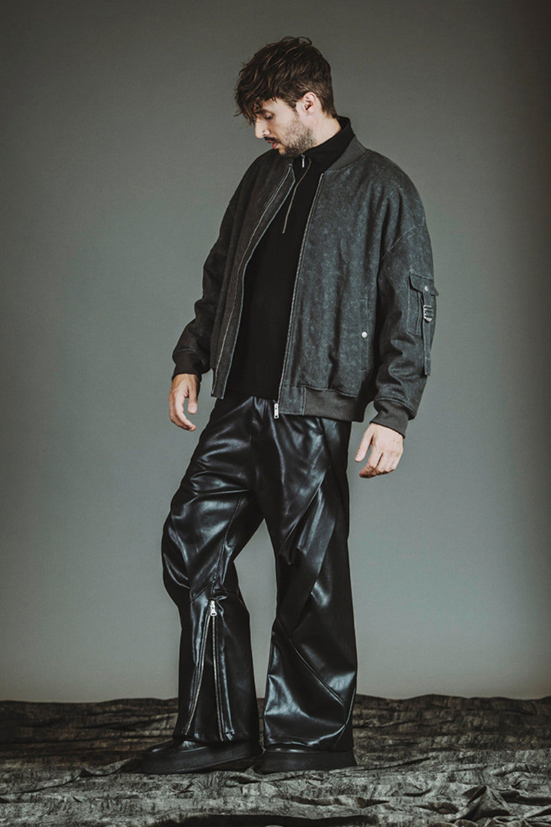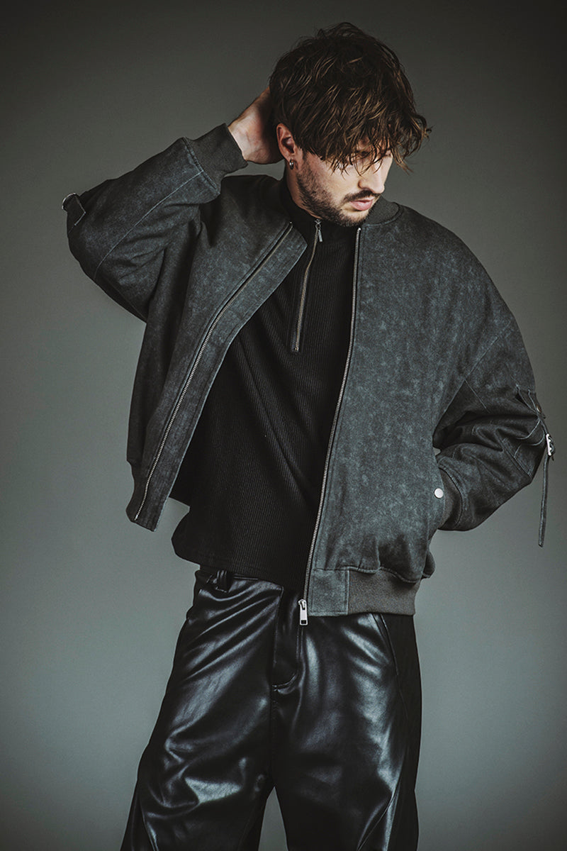 CATALOG 25AW vol6 STYLE01 アンイーブンプリントBIG MA-1BLZ ¥30,800 シンセティックレザーZIPフレアPT ¥23,100 クインテッドリング ¥6,380 ディストーションリング ¥6,380 カウレザープラットフォームレースアップブーツ ¥66,000 OTHER STYLE CATALOG ARCHVE CATALOG TOP 2025AWvol6 2025AWvol5 2025AWvol4 2025AWvol3 2025AWvol2 2025AWvol1