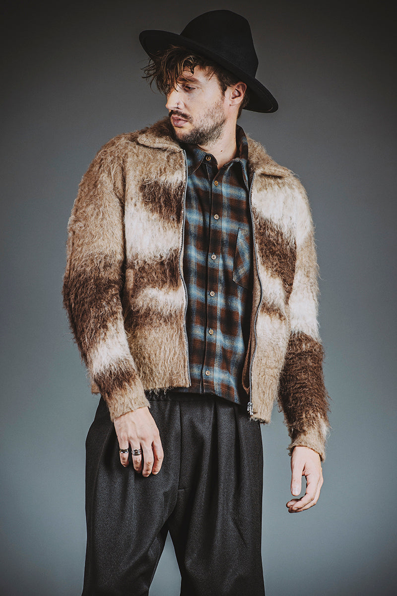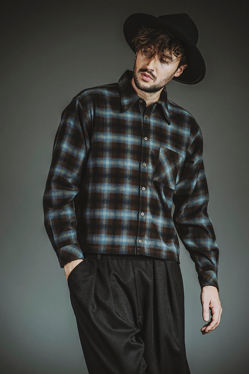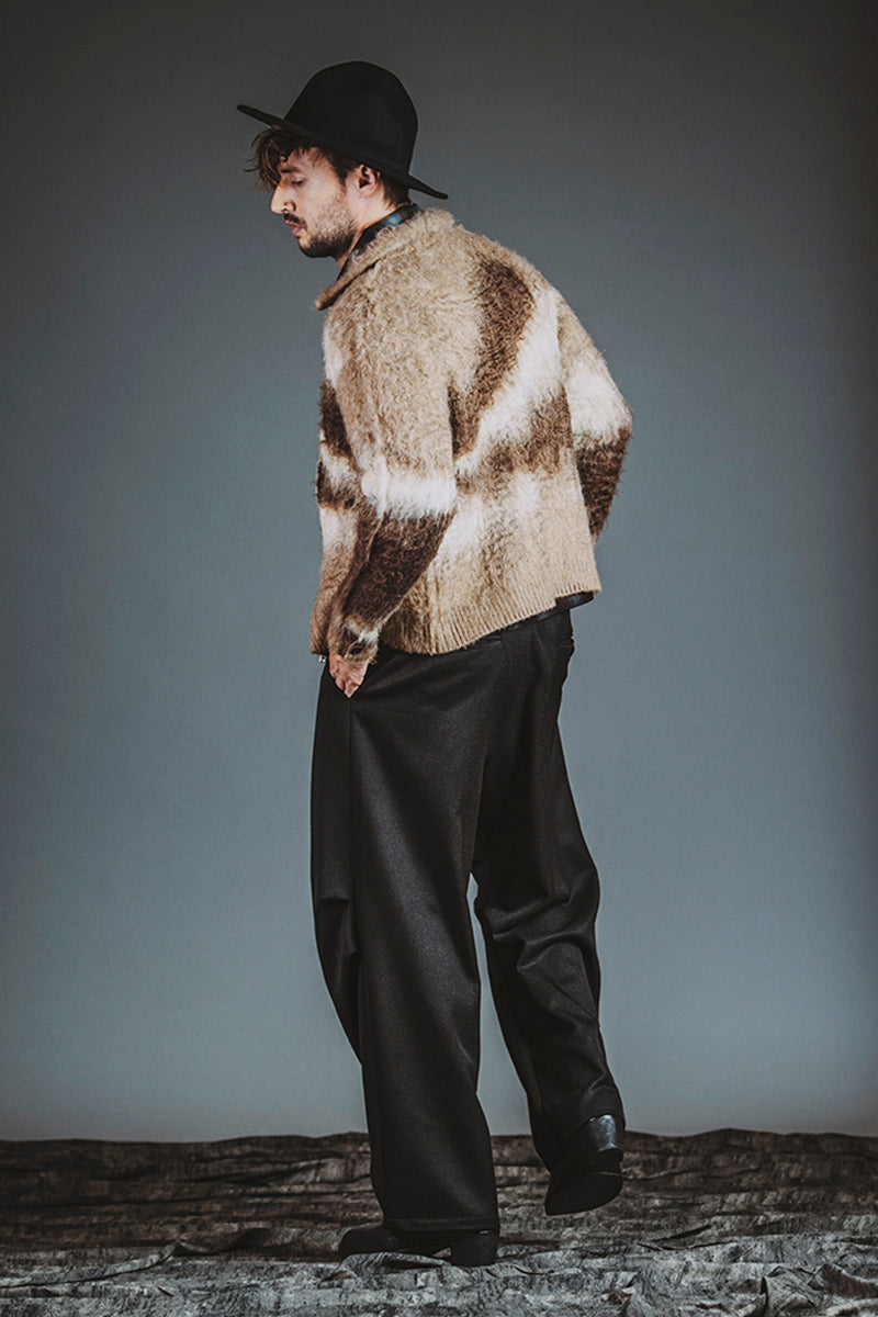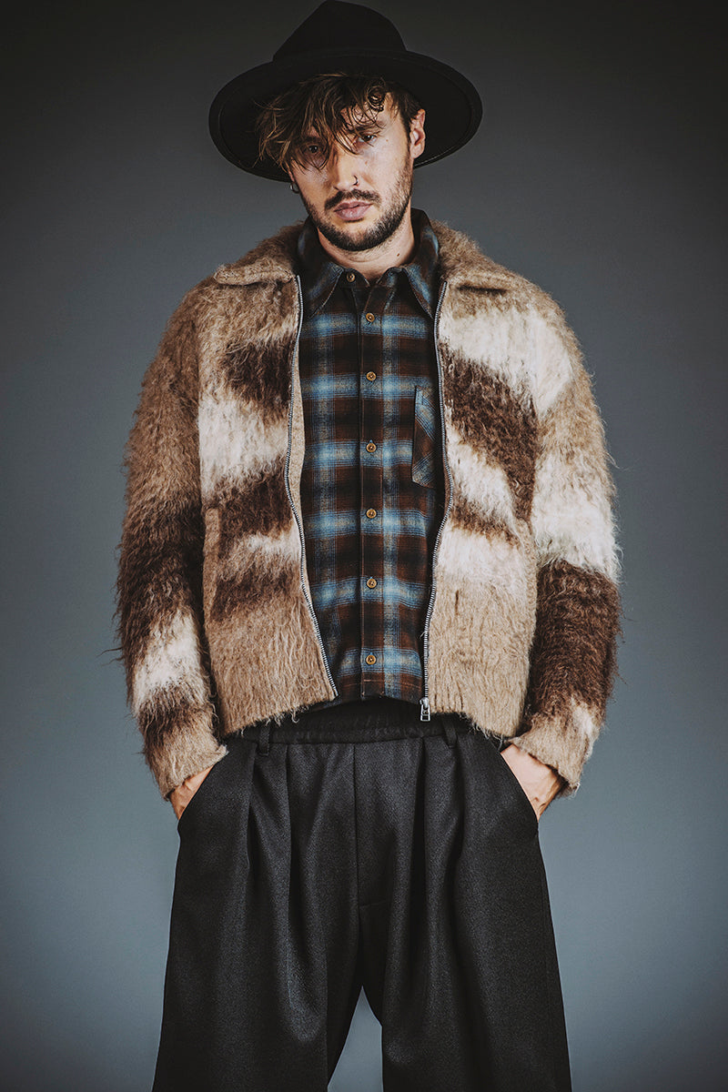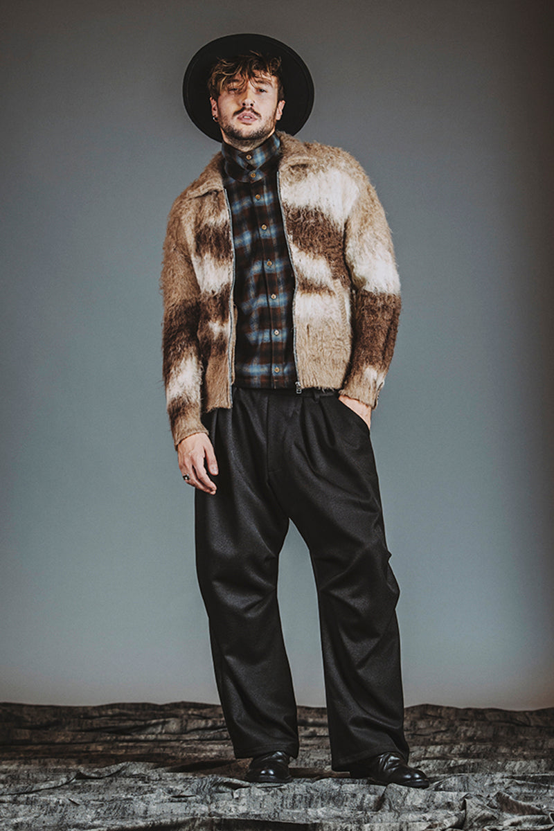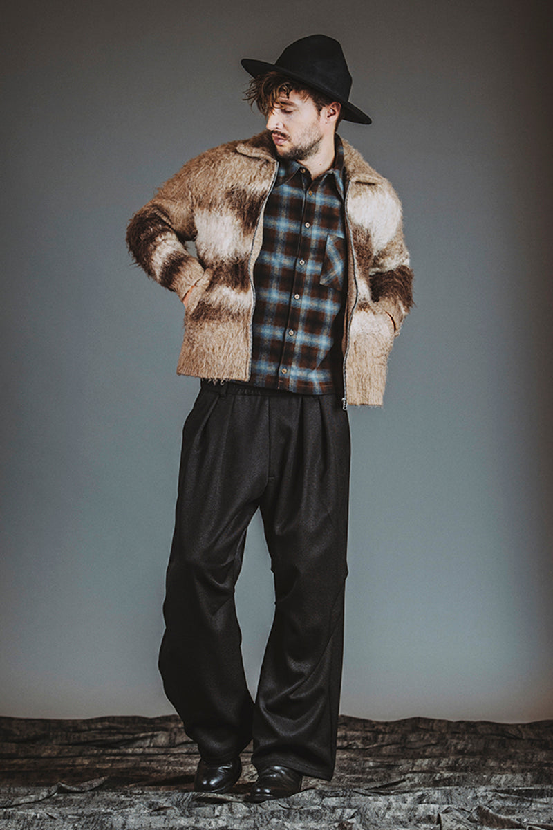 CATALOG 25AW vol6 STYLE02 シャギージャカードニットBLZ ¥20,900 ネルチェックシャツBLZ ¥16,500 ツータックイージーパラシュートトラウザーズ ¥17,380 クインテッドリング ¥6,380 ディストーションリング ¥6,380 マウンテンハット ¥5,280 ドレープヒールブーツ ¥52,800 OTHER STYLE CATALOG ARCHVE CATALOG TOP 2025AWvol6 2025AWvol5 2025AWvol4 2025AWvol3 2025AWvol2 2025AWvol1
