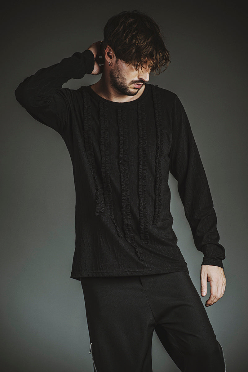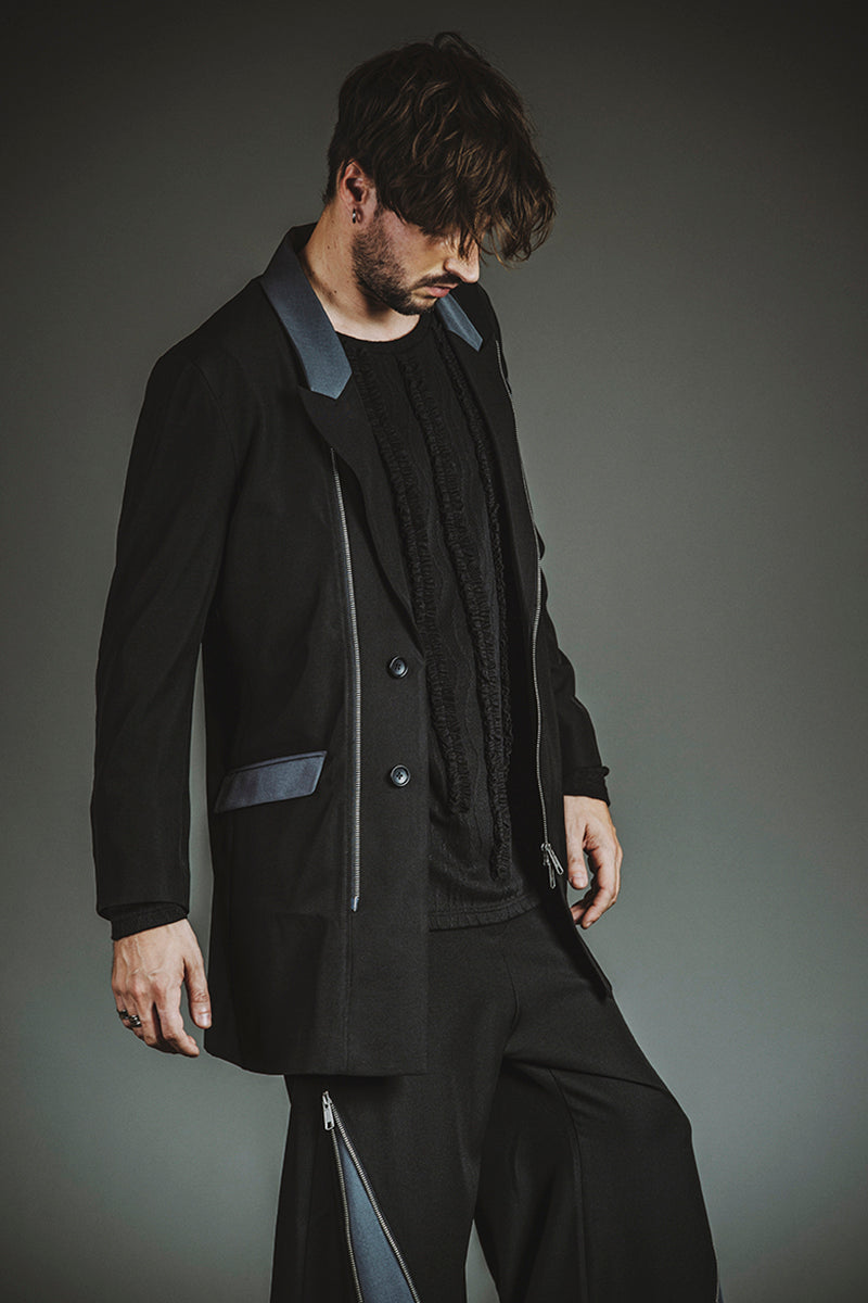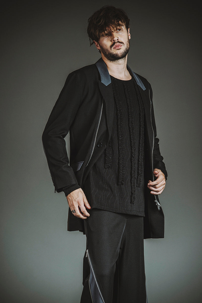 CATALOG 25AW vol6 STYLE07 チェンジングZIP-2BチェスターJKT ¥35,200 ロープジャカードフリルPO ¥10,780 チェンジングフレアトラウザーズ ¥22,000 クインテッドリング ¥6,380 ディストーションリング ¥6,380 ドレープヒールブーツ ¥52,800 OTHER STYLE CATALOG ARCHVE CATALOG TOP 2025AWvol6 2025AWvol5 2025AWvol4 2025AWvol3 2025AWvol2 2025AWvol1