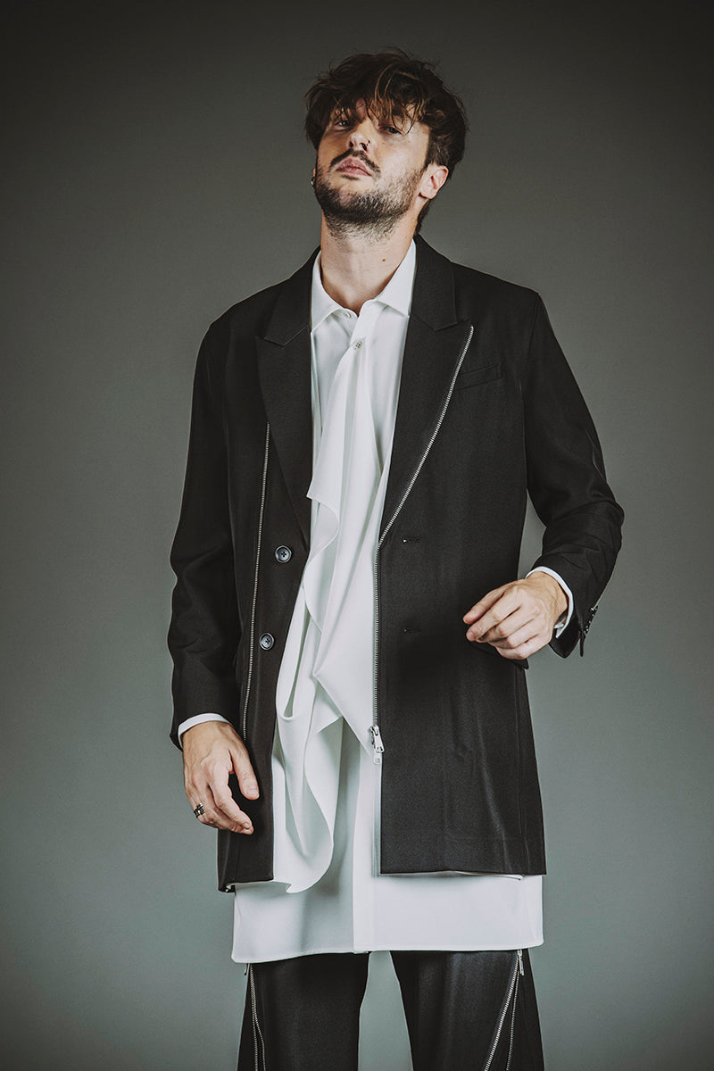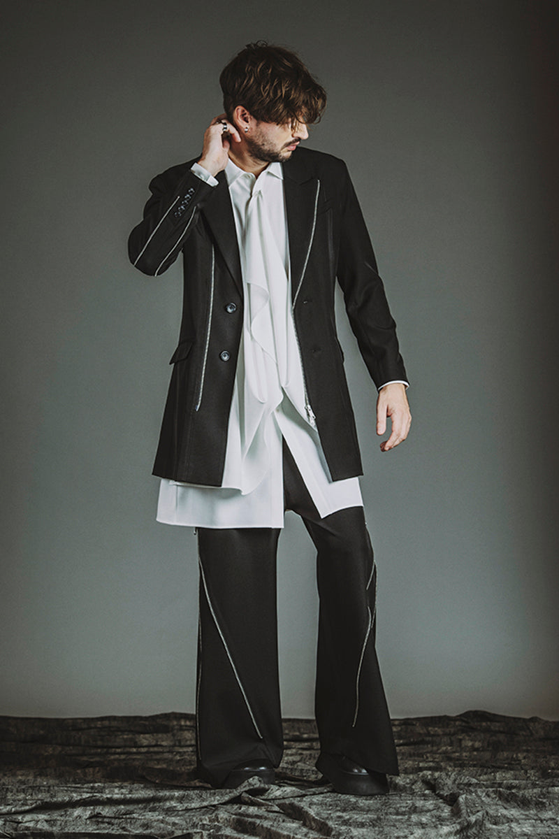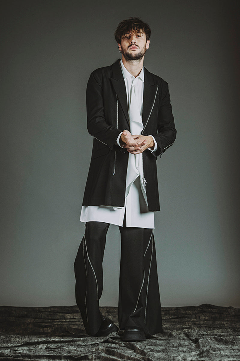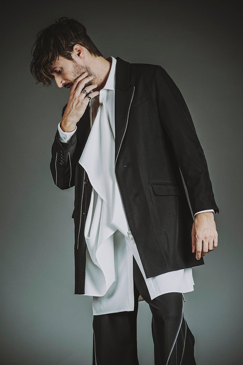 CATALOG 25AW vol6 STYLE08 チェンジングZIP-2BチェスターJKT ¥35,200 ドレープロングSH ¥19,800 チェンジングフレアトラウザーズ ¥22,000 クインテッドリング ¥6,380 ディストーションリング ¥6,380 カウレザープラットフォームレースアップブーツ ¥66,000 OTHER STYLE CATALOG ARCHVE CATALOG TOP 2025AWvol6 2025AWvol5 2025AWvol4 2025AWvol3 2025AWvol2 2025AWvol1