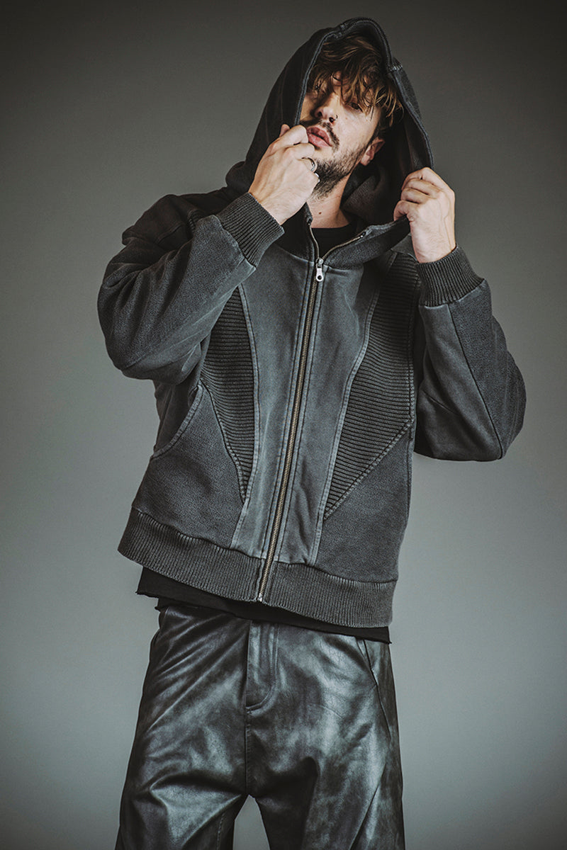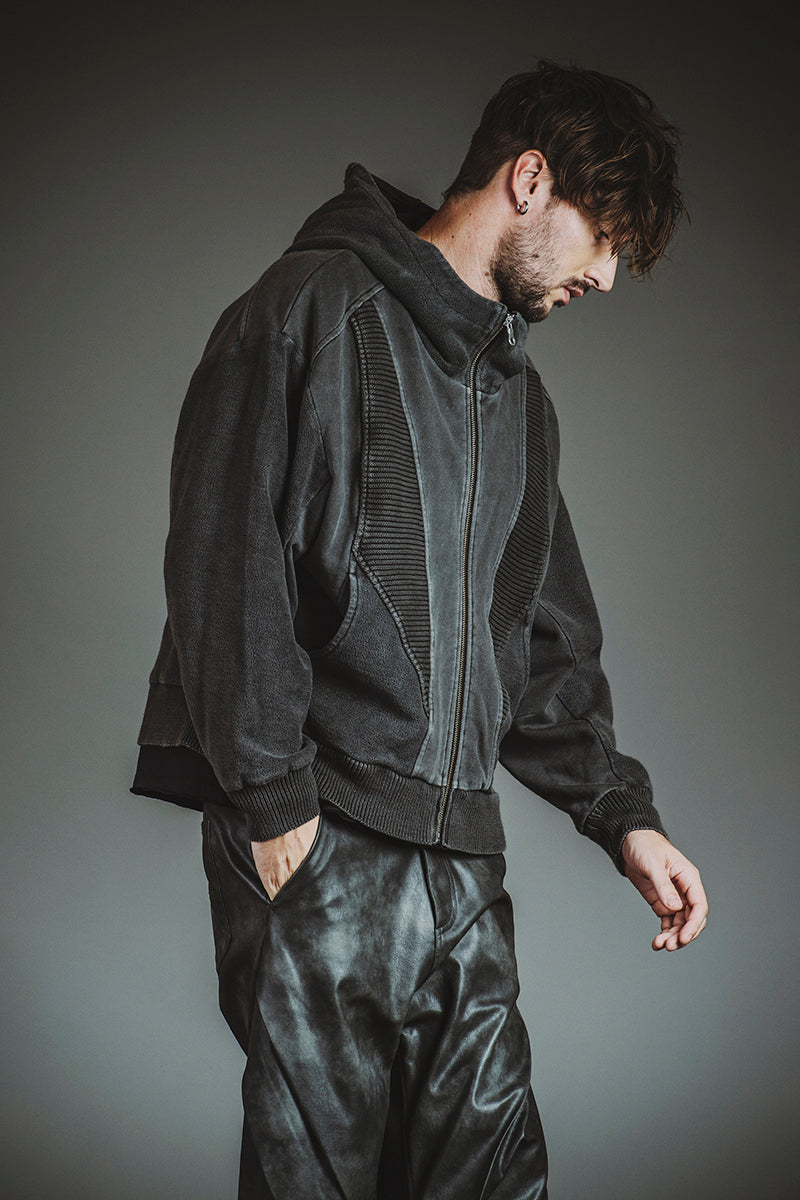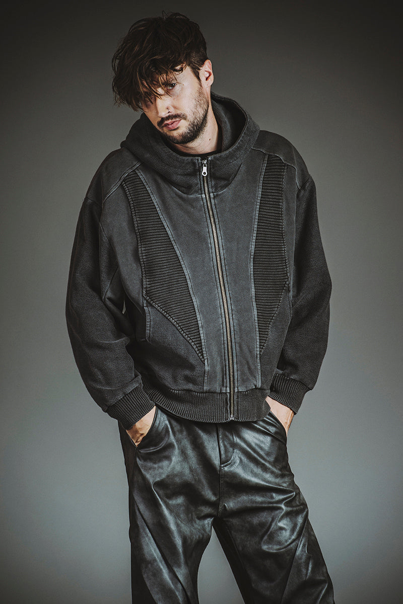 チェンジングニットフーデッドBLZ ¥20,900 チェンジングC/N-PO ¥10,780 シンセティックレザーZIPフレアPT ¥23,100 クインテッドリング ¥6,380 ディストーションリング ¥6,380 カウレザープラットフォームレースアップブーツ ¥66,000