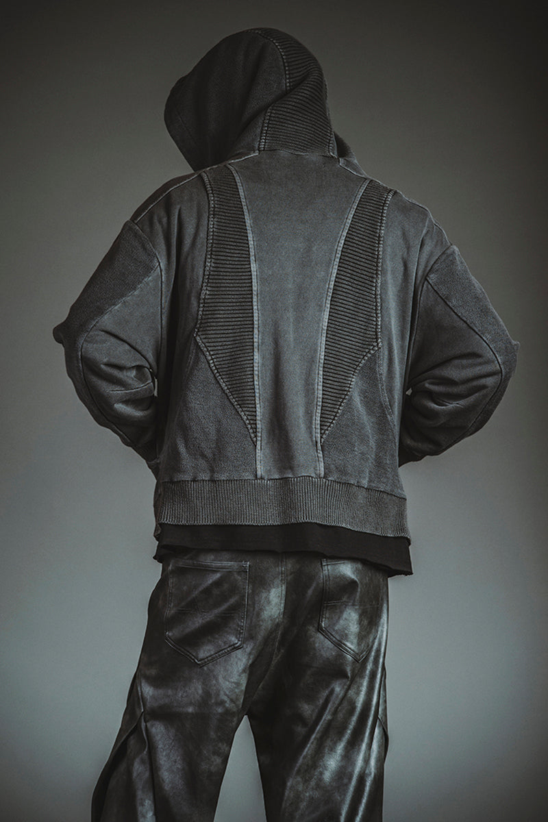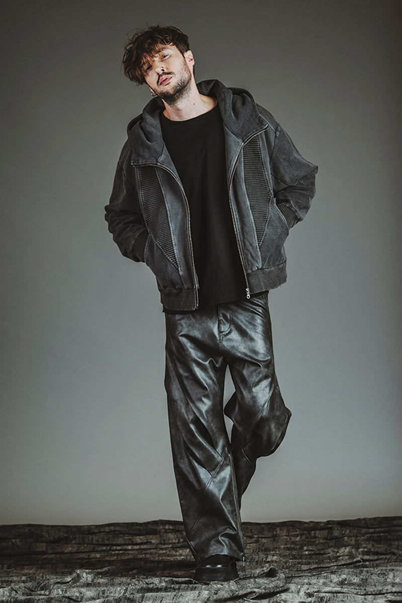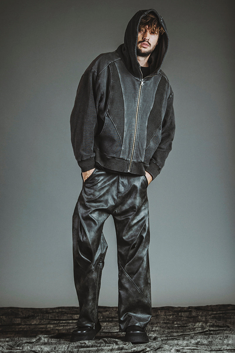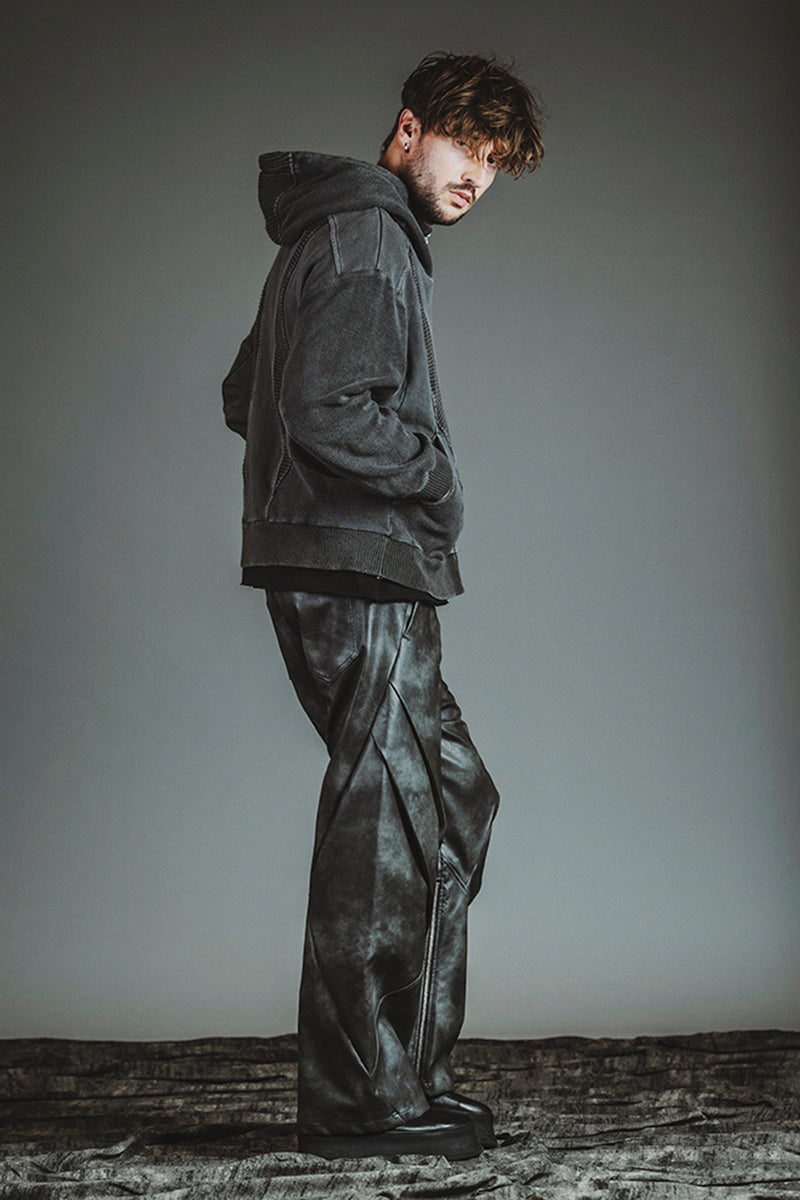 チェンジングニットフーデッドBLZ ¥20,900 チェンジングC/N-PO ¥10,780 シンセティックレザーZIPフレアPT ¥23,100 クインテッドリング ¥6,380 ディストーションリング ¥6,380 カウレザープラットフォームレースアップブーツ ¥66,000