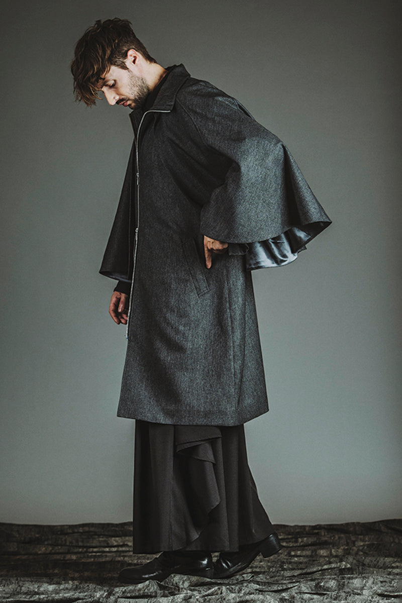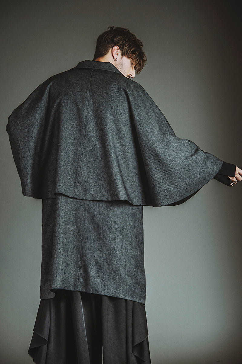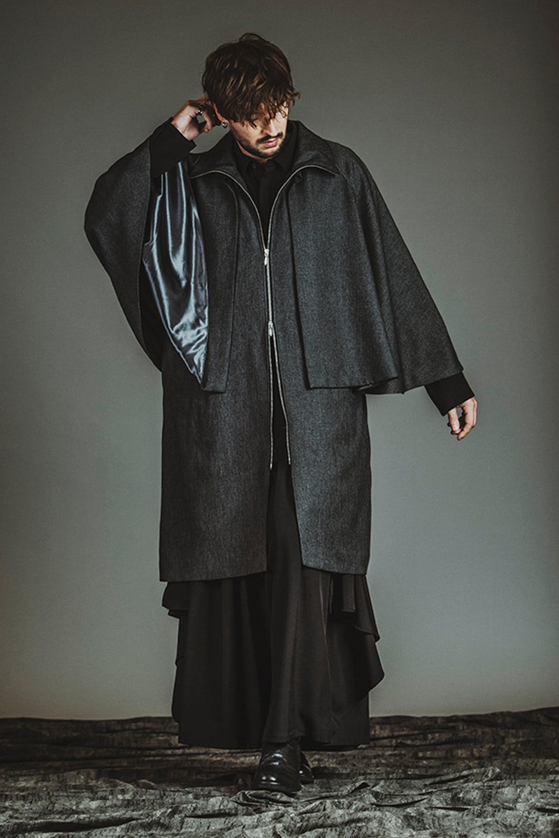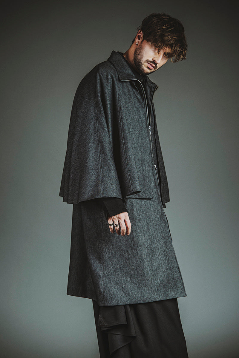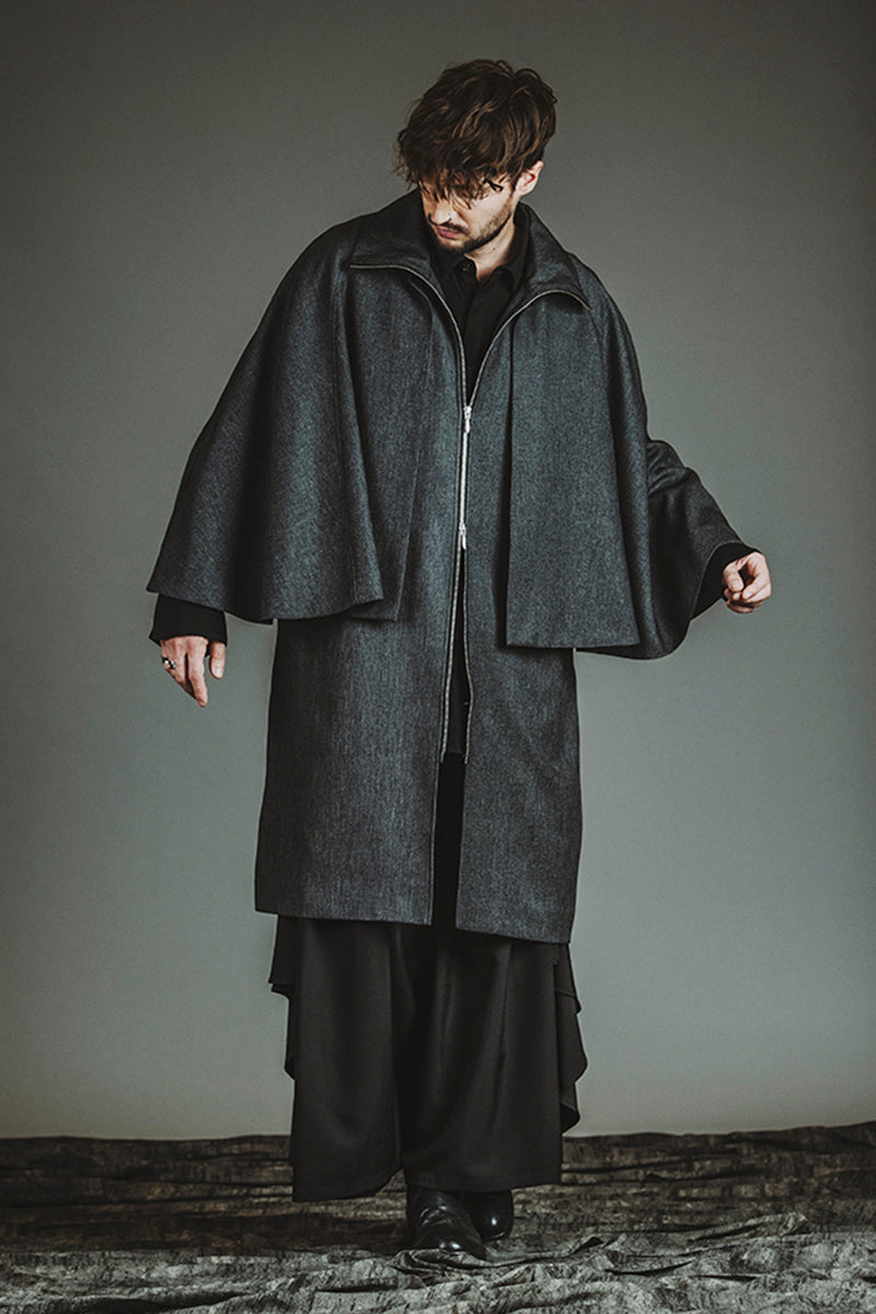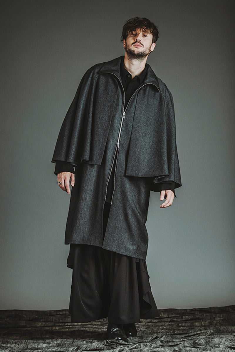 CATALOG 25AW vol7 STYLE03 ハイカラーインバネスコート ¥35,200 ギャザーバギードレープトラウザーズ ¥22,000 クインテッドリング ¥6,380 ディストーションリング ¥6,380 ドレープヒールブーツ ¥52,800 OTHER STYLE CATALOG ARCHVE CATALOG TOP 2025AWvol8 2025AWvol7 2025AWvol6 2025AWvol5 2025AWvol4 2025AWvol3 2025AWvol2 2025AWvol1