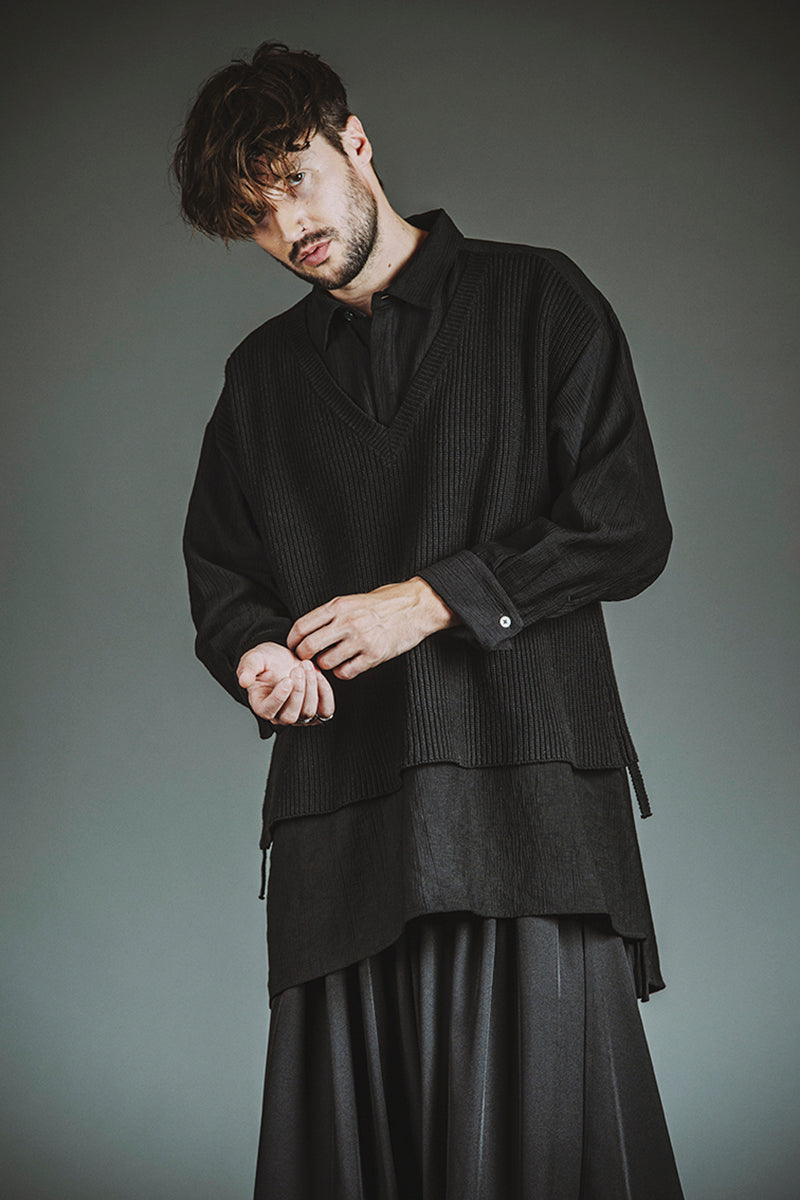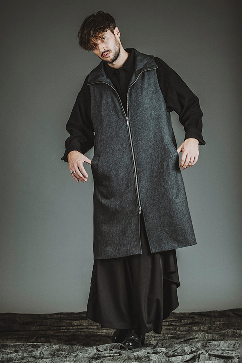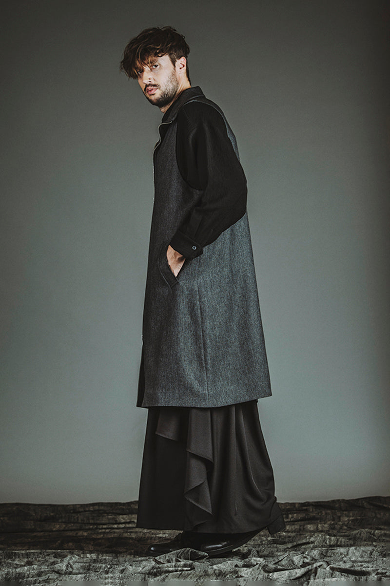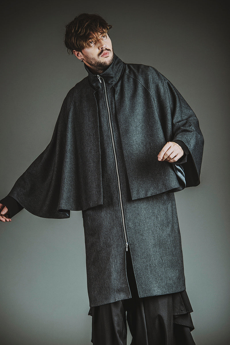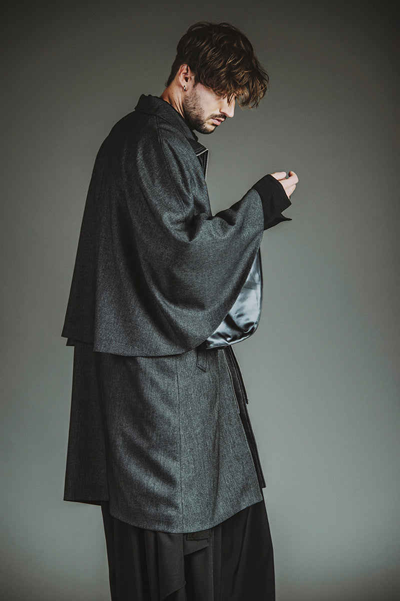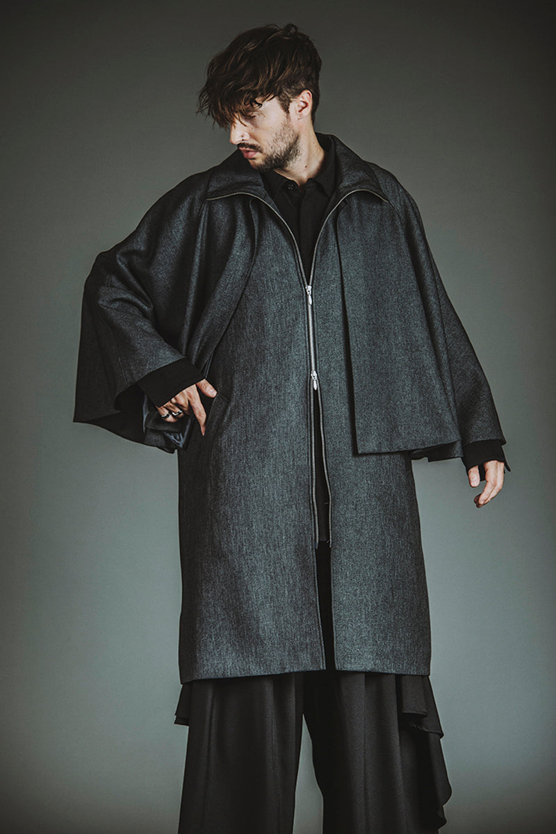CATALOG 25AW vol7 STYLE03 ハイカラーインバネスコート ¥35,200 ギャザーバギードレープトラウザーズ ¥22,000 クインテッドリング ¥6,380 ディストーションリング ¥6,380 ドレープヒールブーツ ¥52,800 OTHER STYLE CATALOG ARCHVE CATALOG TOP 2025AWvol8 2025AWvol7 2025AWvol6 2025AWvol5 2025AWvol4 2025AWvol3 2025AWvol2 2025AWvol1