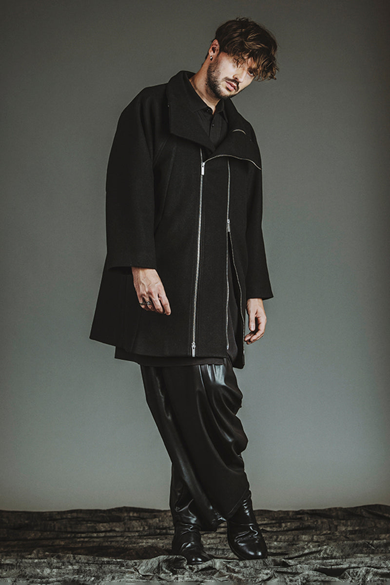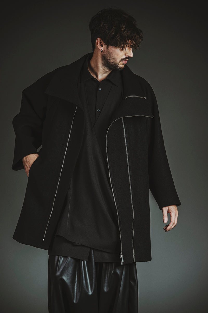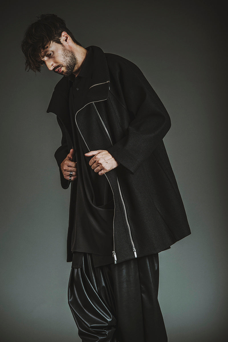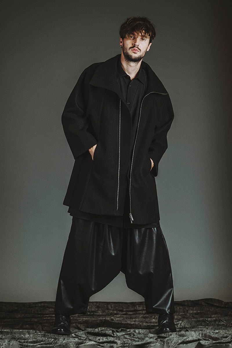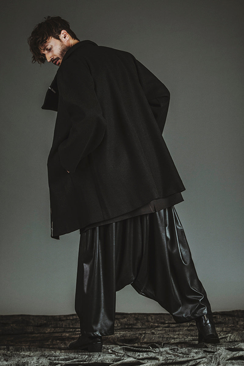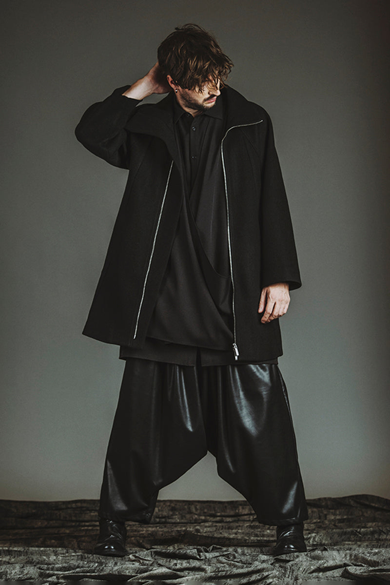 CATALOG 25AW vol7 STYLE04 ドレープロングSH ¥19,800 シンセティックレザーサルエルトラウザーズ ¥18,700 クインテッドリング ¥6,380 ディストーションリング ¥6,380 ドレープヒールブーツ ¥52,800 OTHER STYLE CATALOG ARCHVE CATALOG TOP 2025AWvol8 2025AWvol7 2025AWvol6 2025AWvol5 2025AWvol4 2025AWvol3 2025AWvol2 2025AWvol1