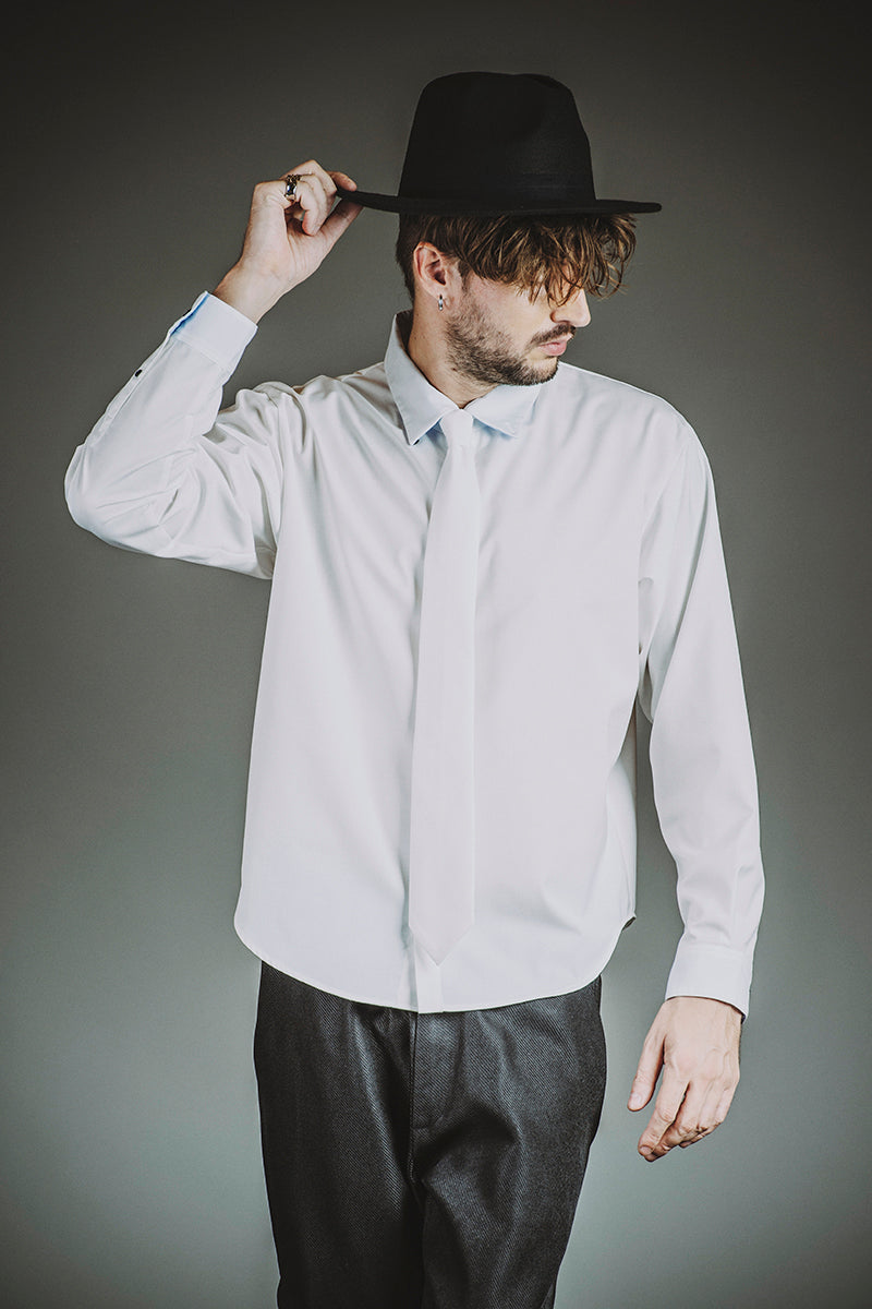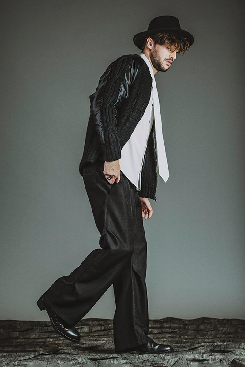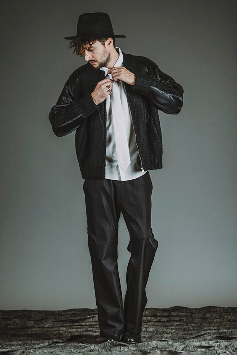 CATALOG 25AW vol8 STYLE03 ドッキングニットスーベニアJKT ¥30,800 ネクタイ付SH ¥15,180 ワイドレッグタックトラウザース ¥15,400 クインテッドリング ¥6,380 ディストーションリング ¥6,380 ドレープヒールブーツ ¥52,800 OTHER STYLE CATALOG ARCHVE CATALOG TOP 2025AWvol8 2025AWvol7 2025AWvol6 2025AWvol5 2025AWvol4 2025AWvol3 2025AWvol2 2025AWvol1