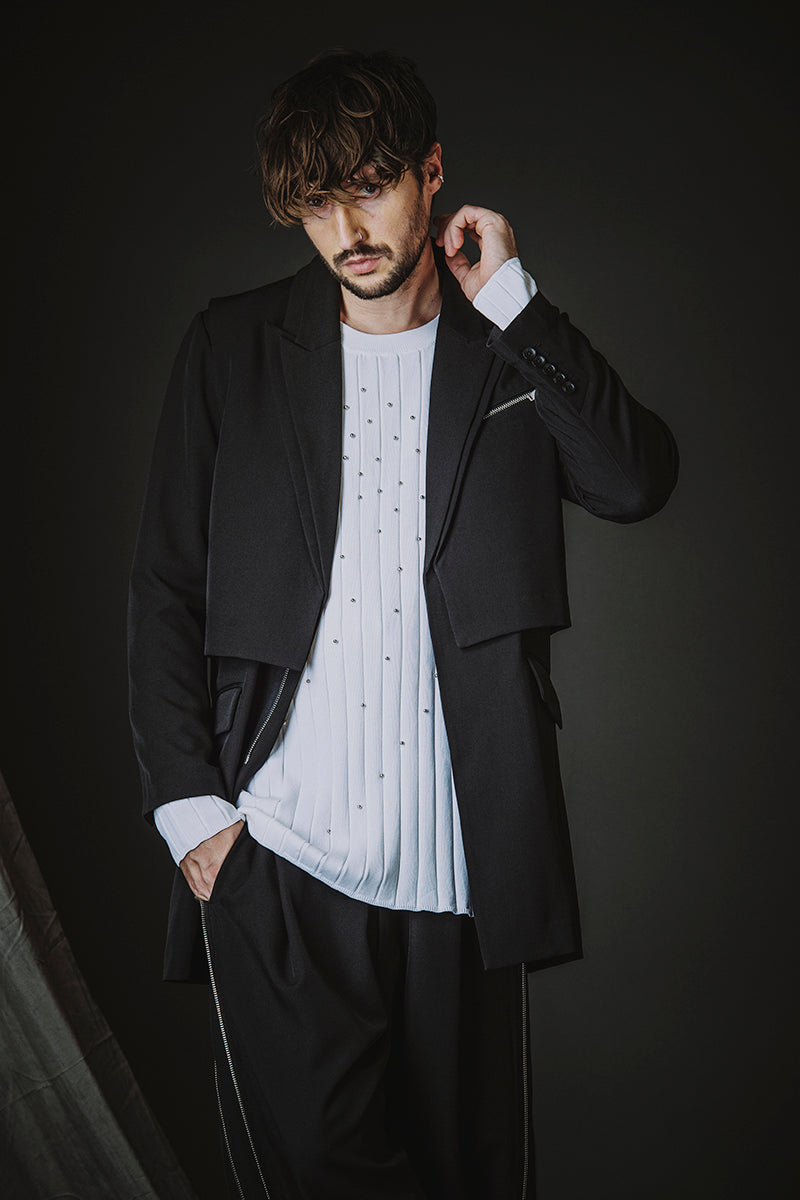 CATALOG 26SS vol1 STYLE05 ドッキングZIPチェスターJKT ¥35,200 スタッズニットPO ¥16,500 サイドZIPイージーワイドトラウザーズ ¥23,100 レイヤードヒールブーツ ¥63,800 OTHER STYLE CATALOG ARCHVE CATALOG TOP 2026SSvol2 2026SSvol1 2025AWvol8 2025AWvol7 2025AWvol6 2025AWvol5 2025AWvol4 2025AWvol3 2025AWvol2 2025AWvol1