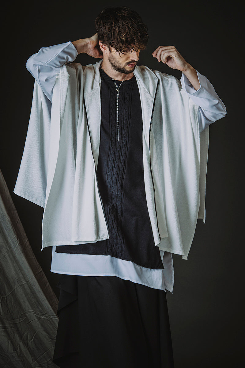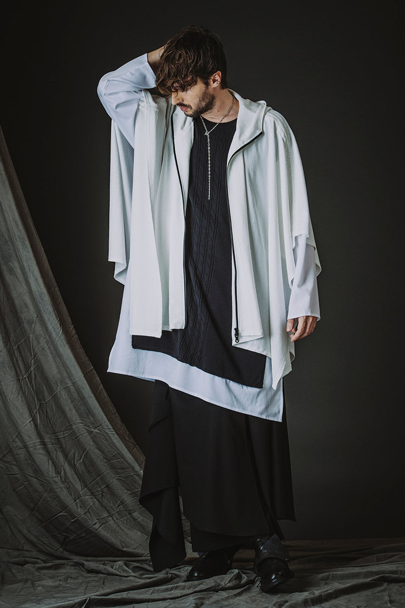 CATALOG 26SS vol2 STYLE09 ドローストリングスフーデッドポンチョ ¥14,300 ドッキングニットロングプルオーバー ¥17,600 レイヤードケープバギートラウザーズ ¥20,900 レイヤードヒールブーツ ¥63,800 OTHER STYLE CATALOG ARCHVE CATALOG TOP 2026SSvol2 2026SSvol1 2025AWvol8 2025AWvol7 2025AWvol6 2025AWvol5 2025AWvol4 2025AWvol3 2025AWvol2 2025AWvol1