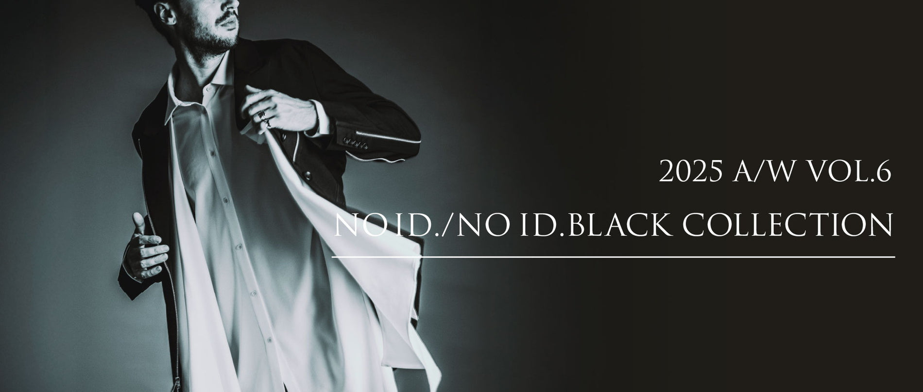 ストールを垂らしたような襟、前下がりのヘムライン、シャープに見える縦長のシルエット。