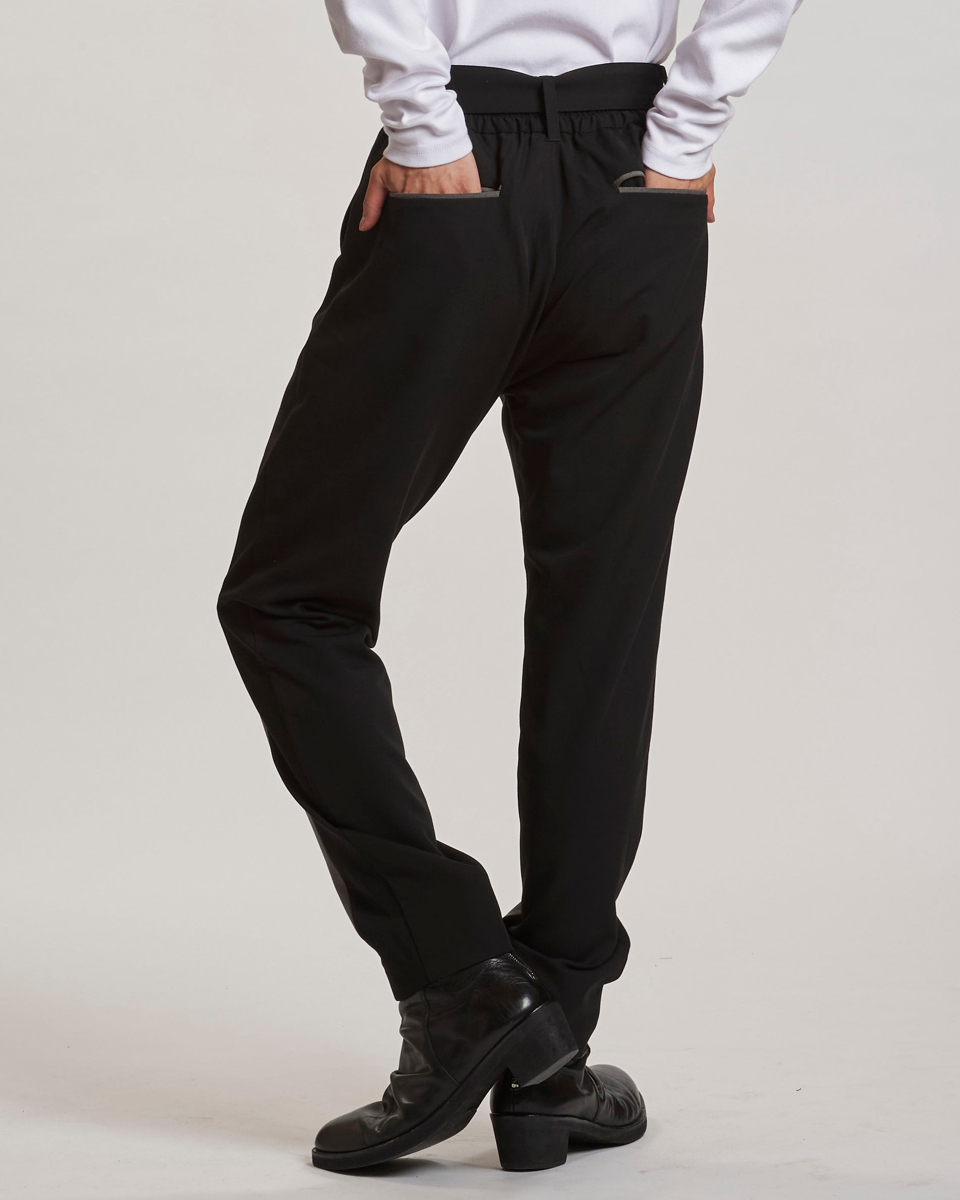 フロントはきちんと感のあるトラウザー仕様、背面はリブ仕様で快適さもプラス。