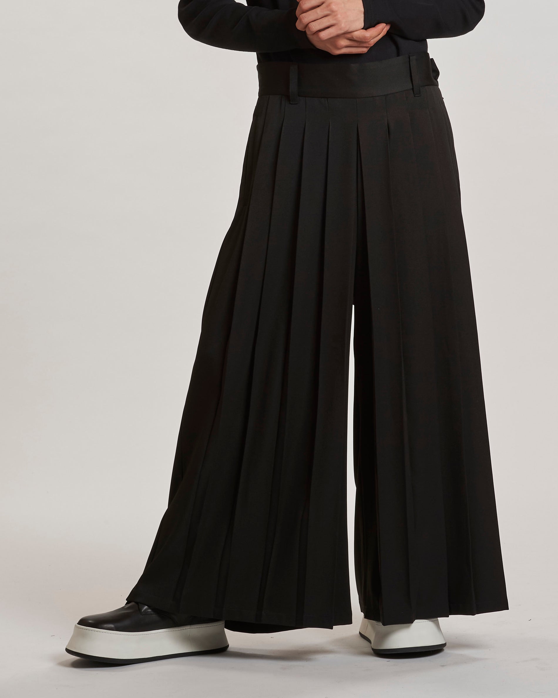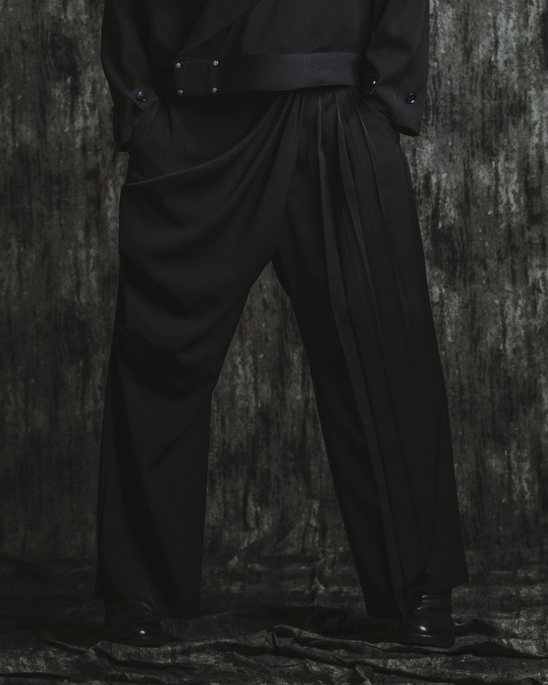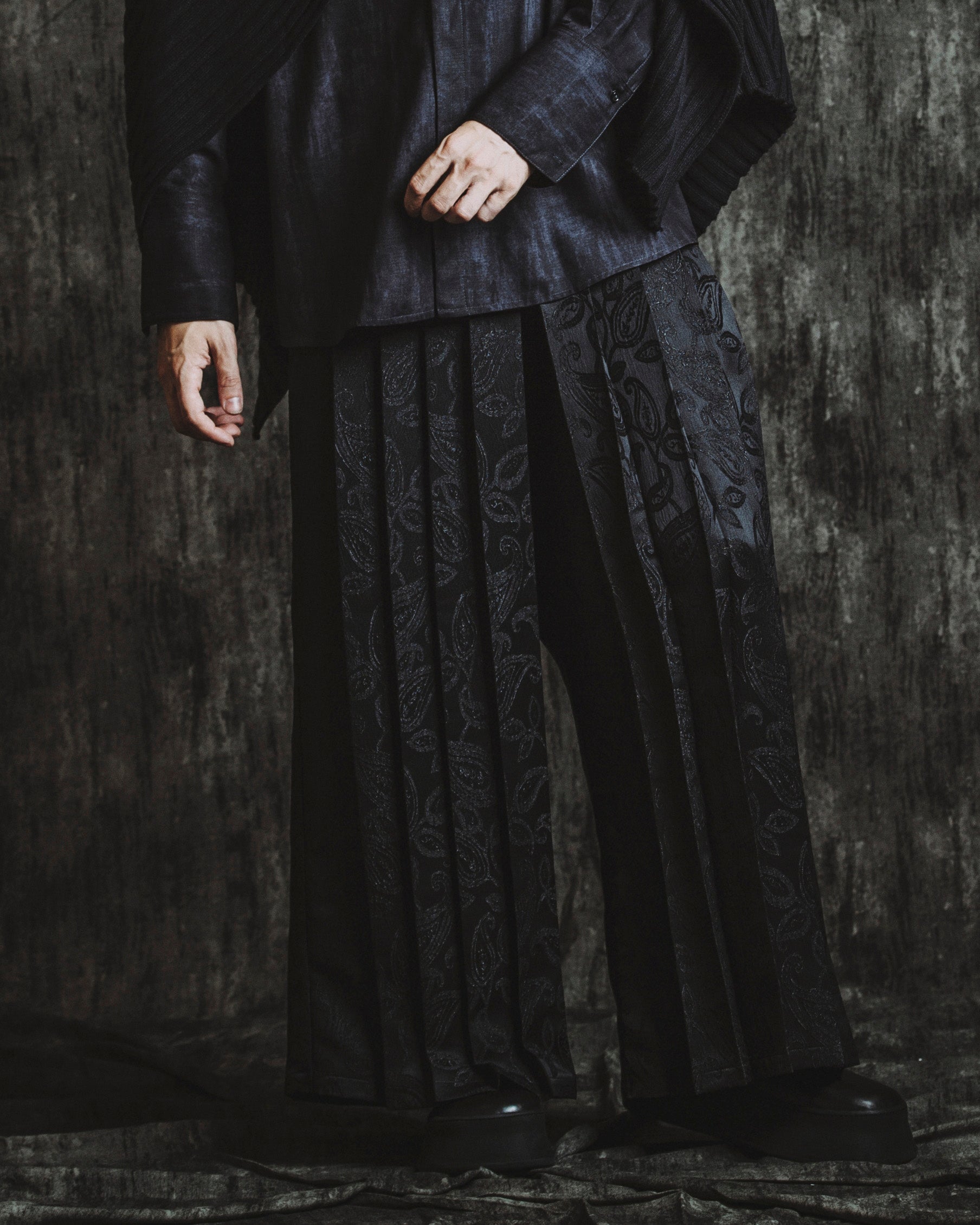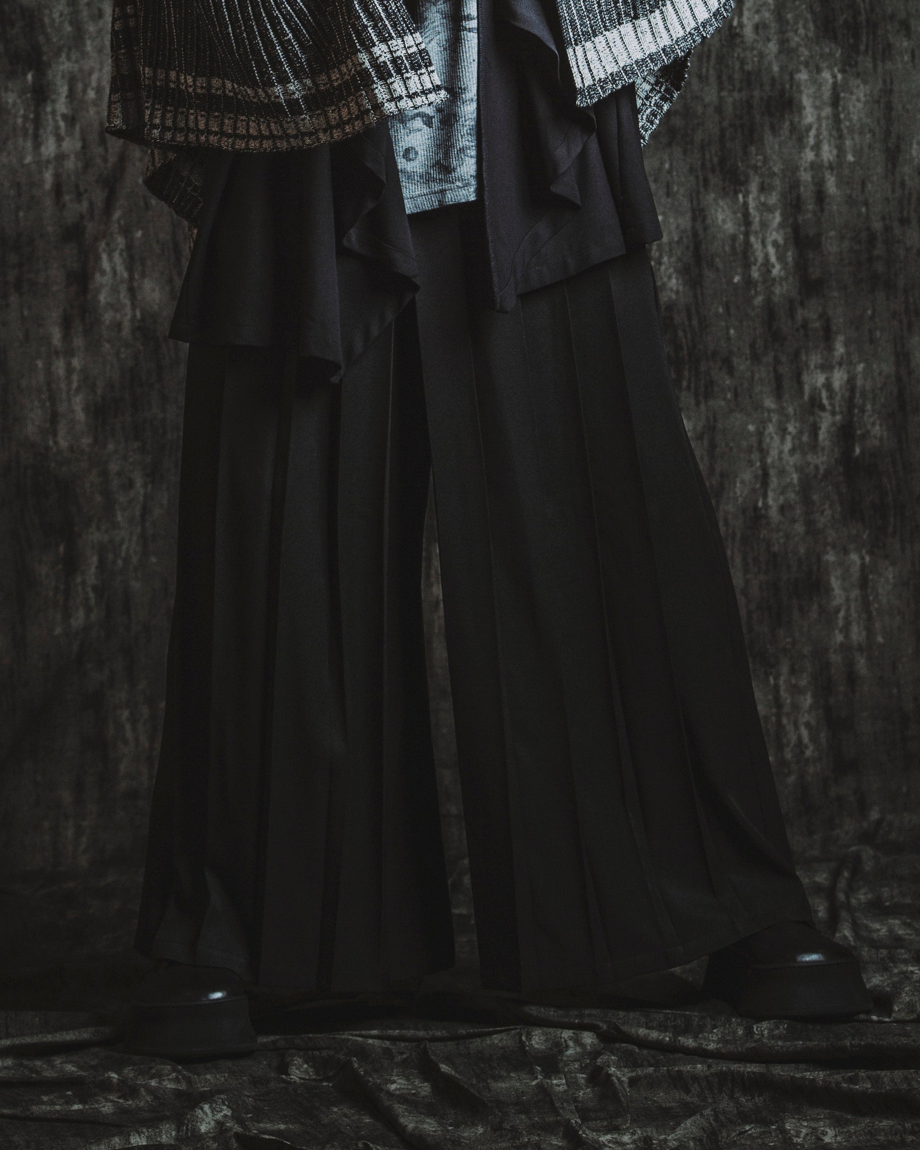 「和」の袴をベースに、モードに昇華させたワイドシルエットパンツ。