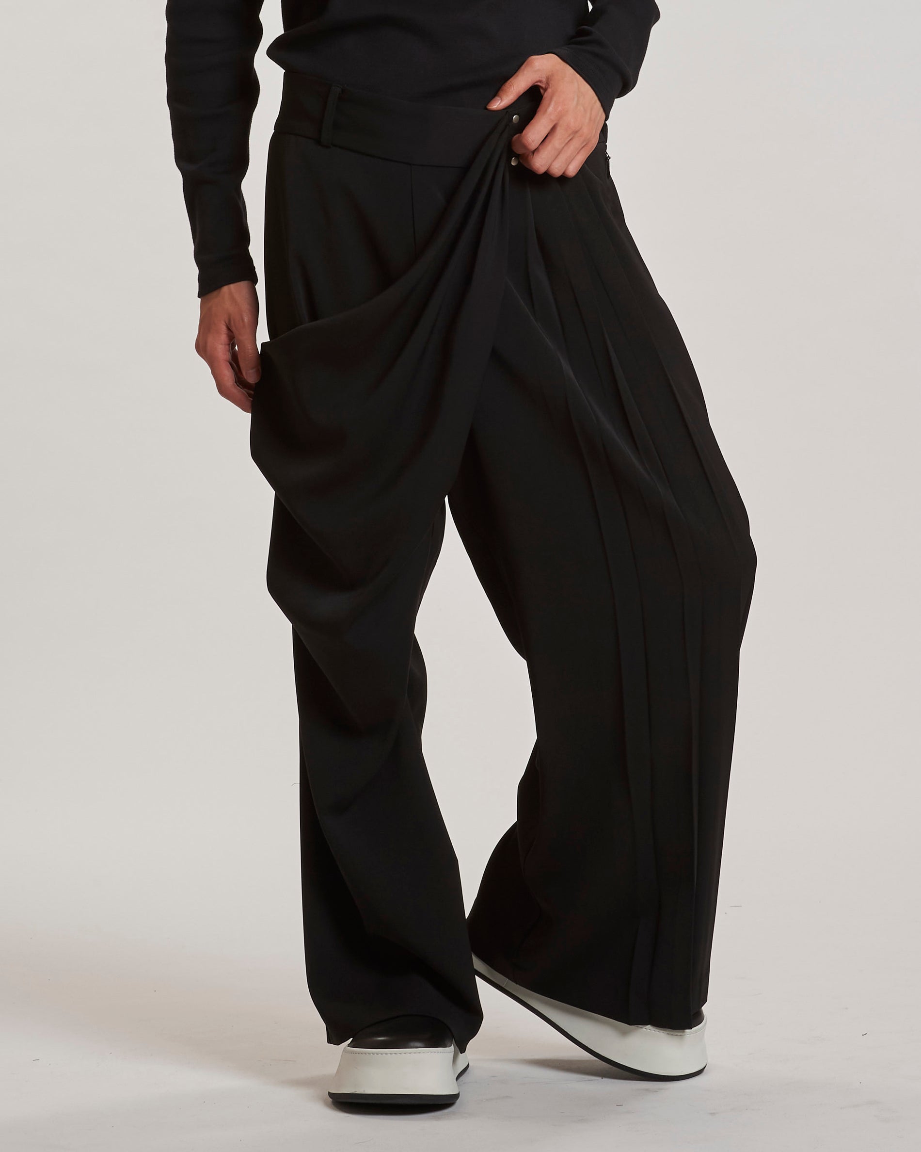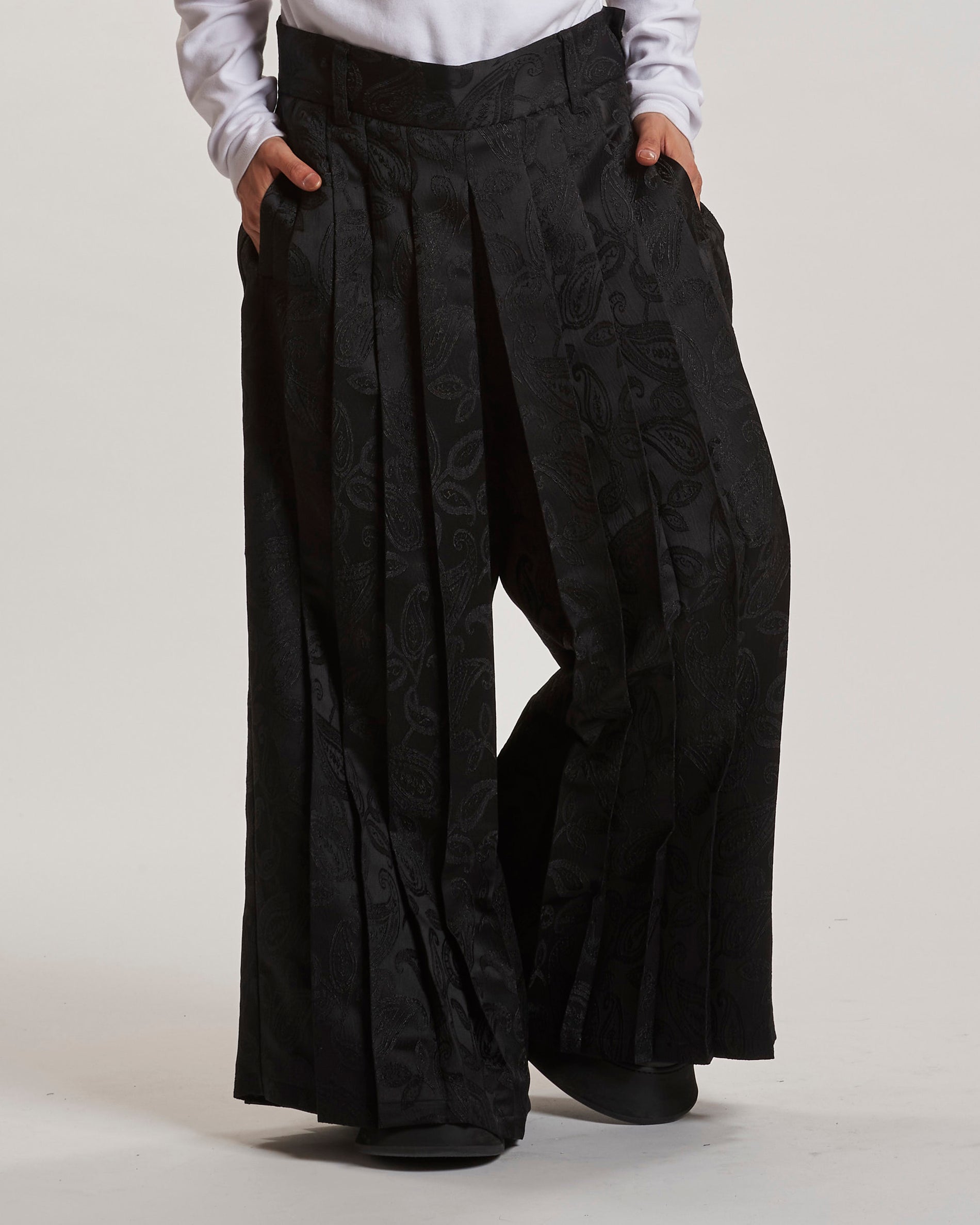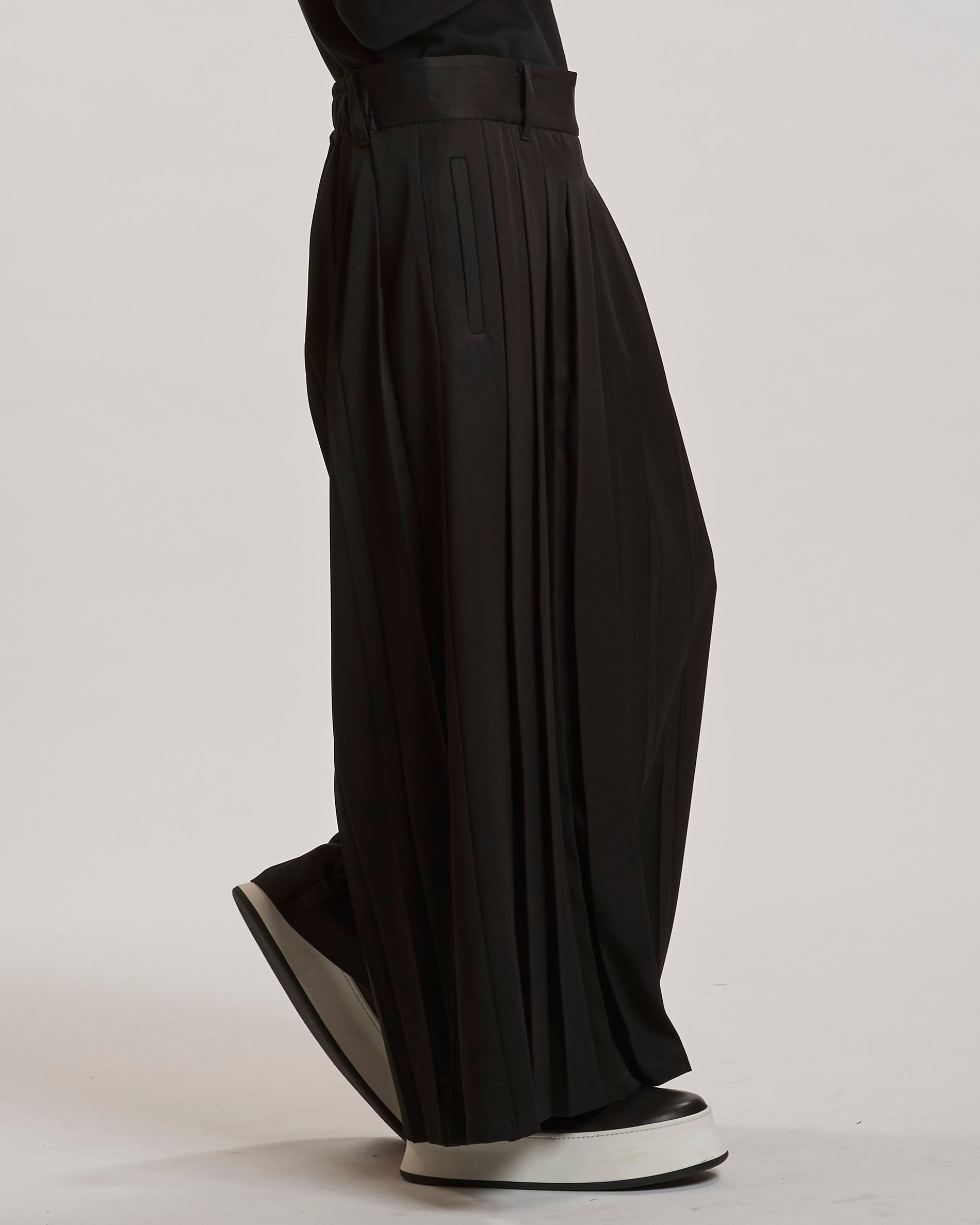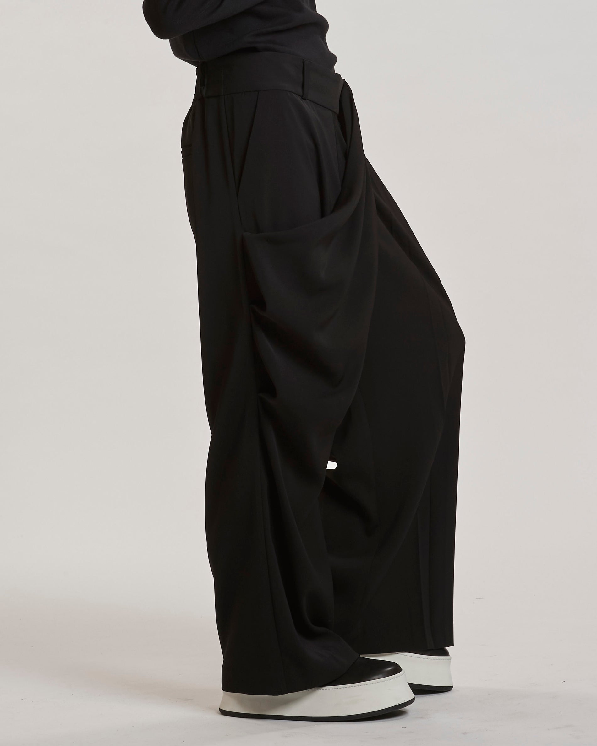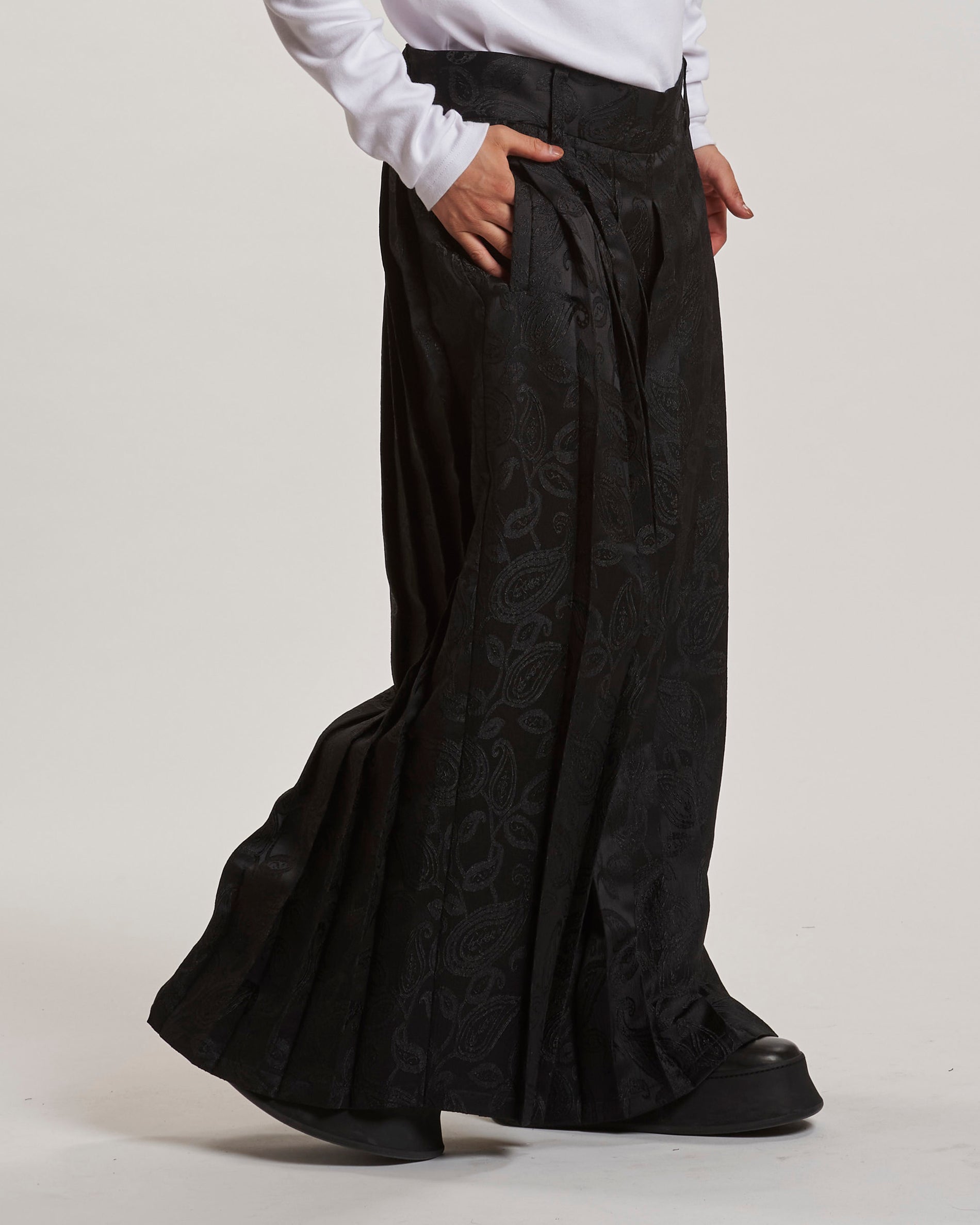 「和」の袴をベースに、モードに昇華させたワイドシルエットパンツ。