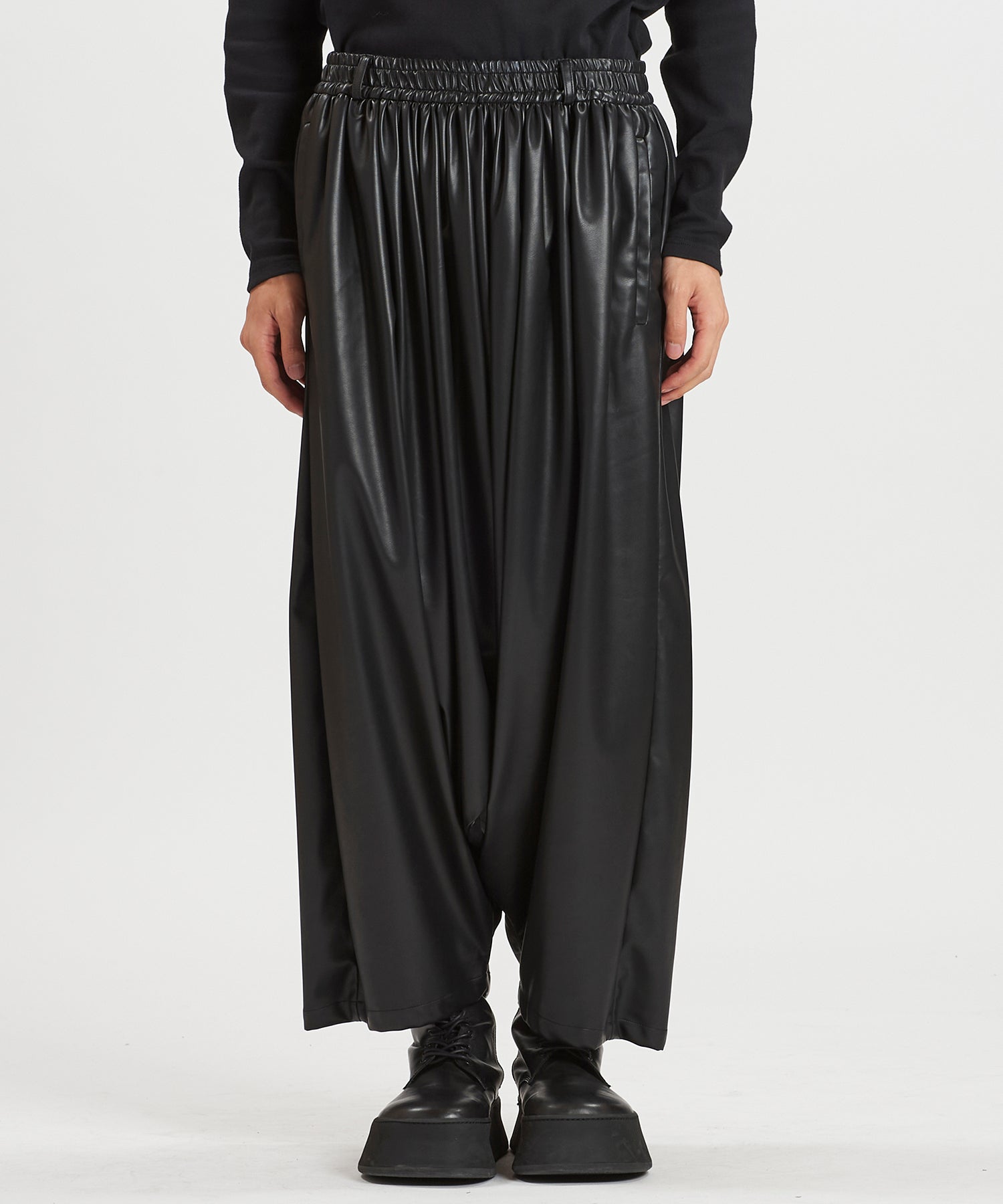 シンセティックレザーサルエルトラウザーズ