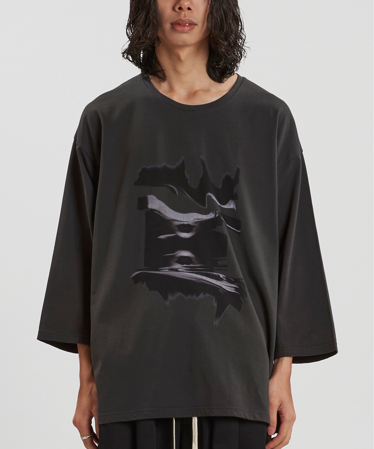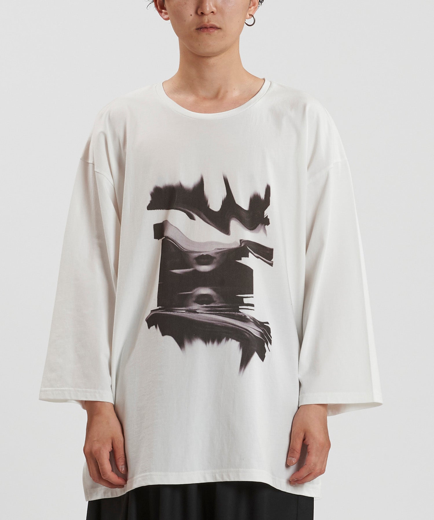 Distortionプリント8分袖BIG-PO