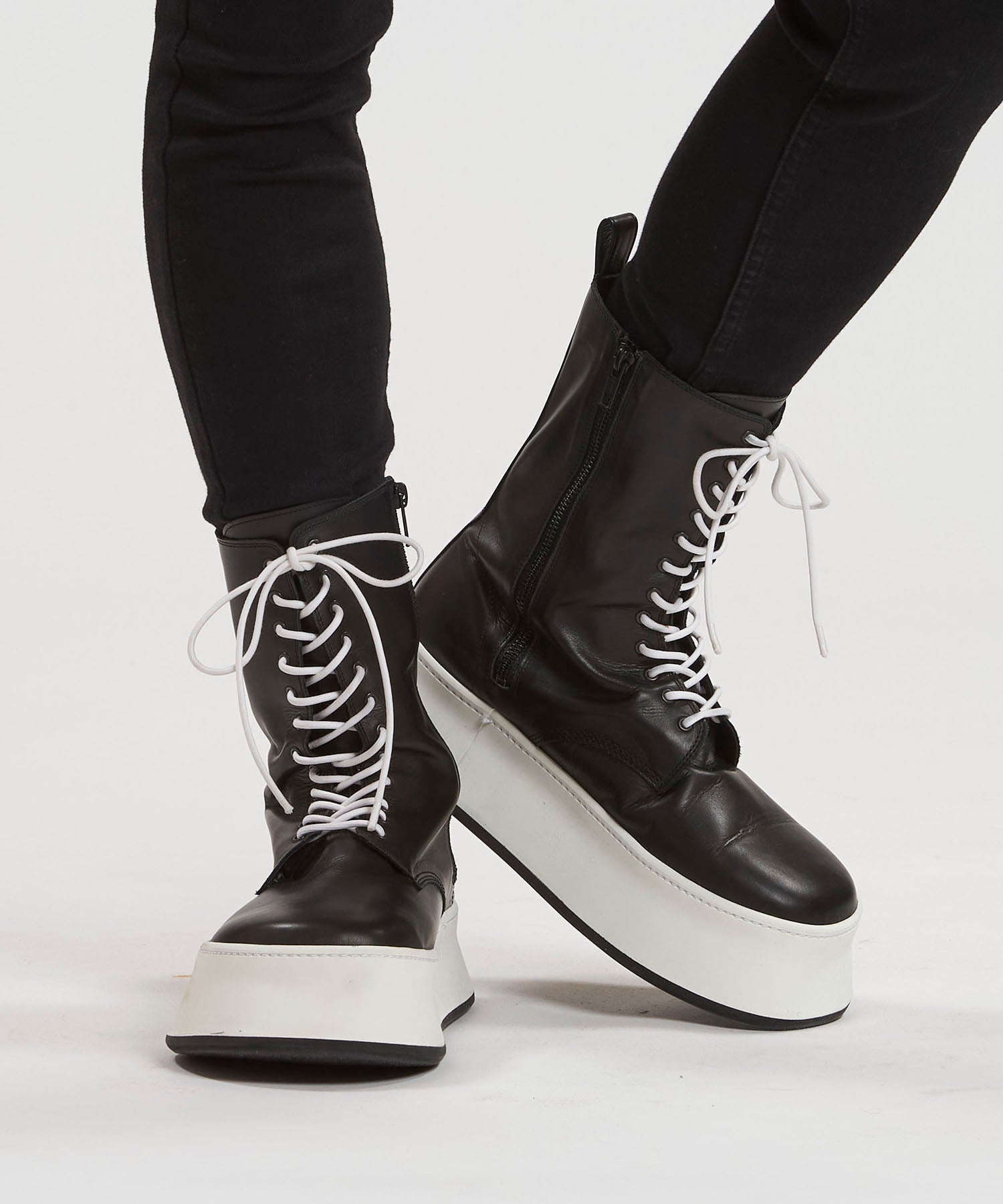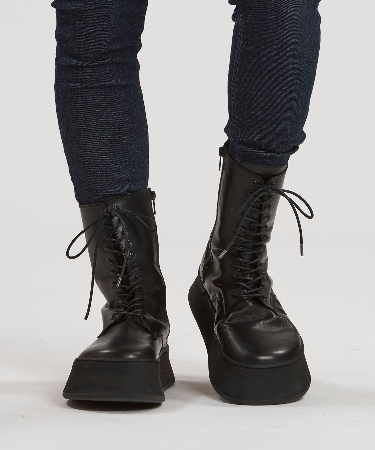 カウレザープラットフォームレースアップブーツ