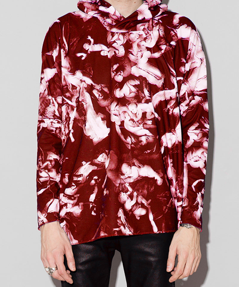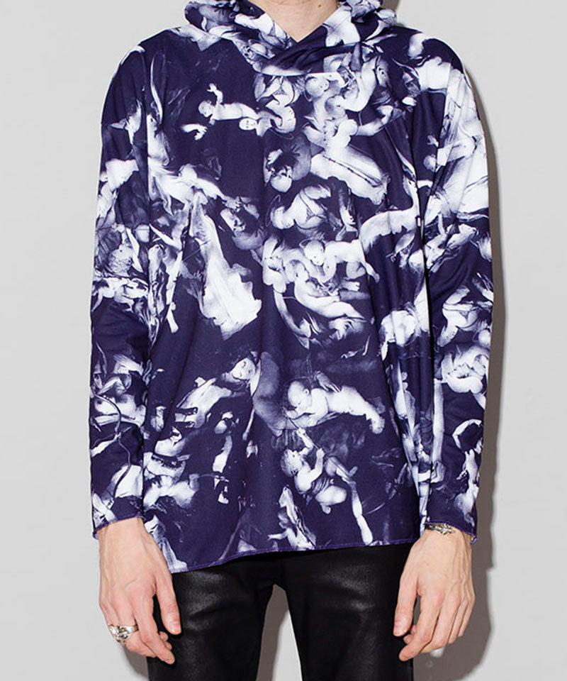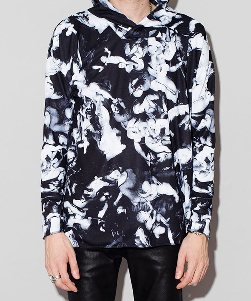 宗教柄プリントプルオーバーパーカー