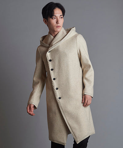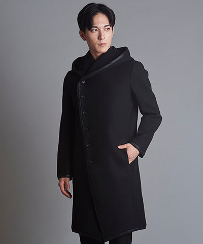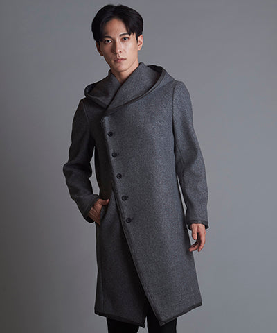 パイピングフーデッドロングコート