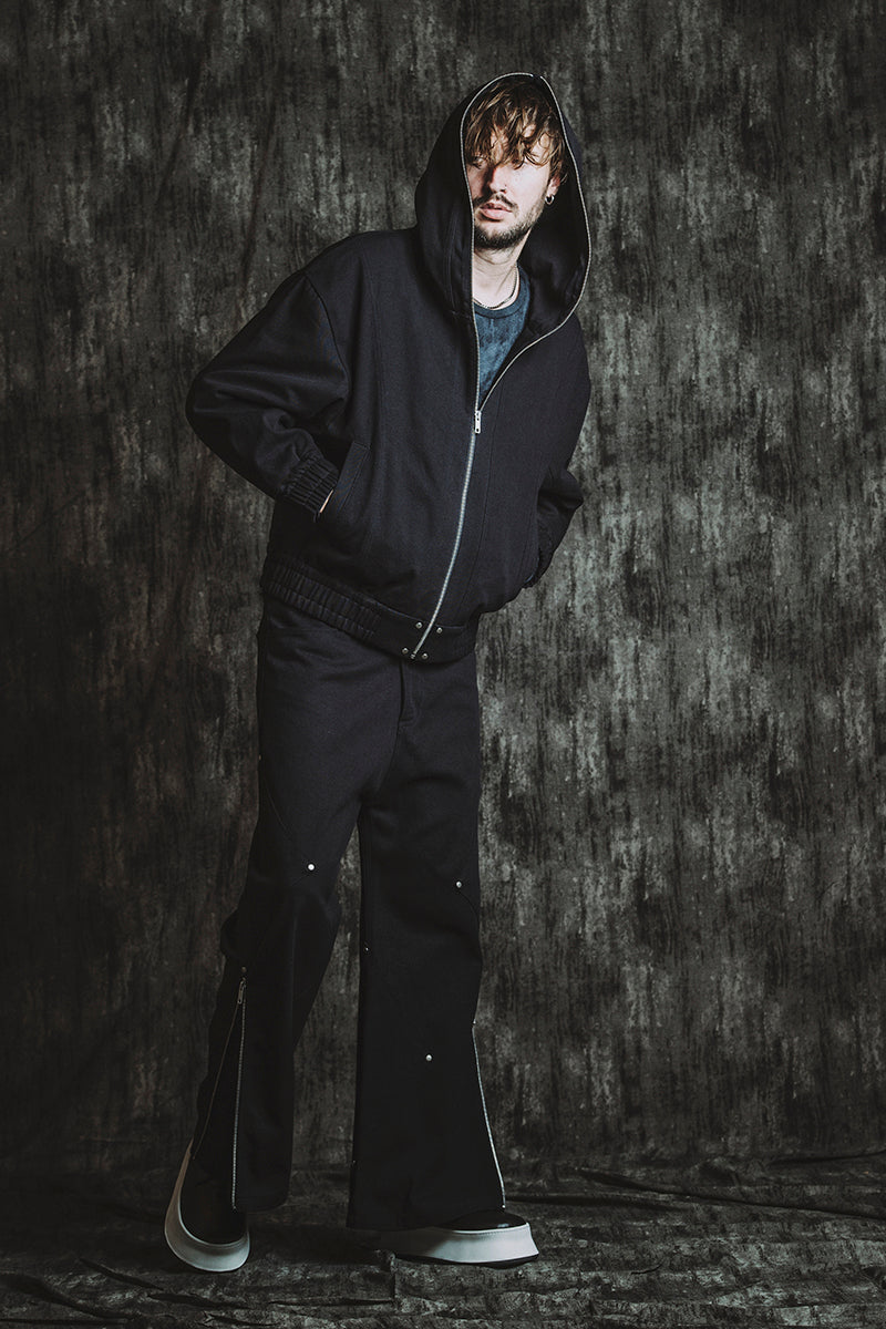 CATALOG 25AW vol4 STYLE02 マルチシームフーデッドBLZ ¥20,900 UnevenプリントサーマルPO ¥8,580 サイドパッチZIPワイドフレアPT ¥22,000 カウレザーベルト ¥7,480 カウレザープラットフォームレースアップブーツ ¥66,000 OTHER STYLE CATALOG ARCHVE CATALOG TOP 2025AWvol5 2025AWvol4 2025AWvol3 2025AWvol2 2025AWvol1
