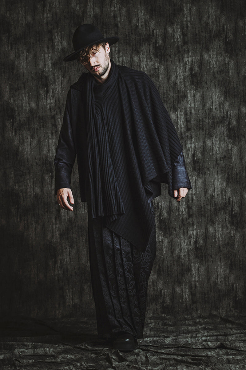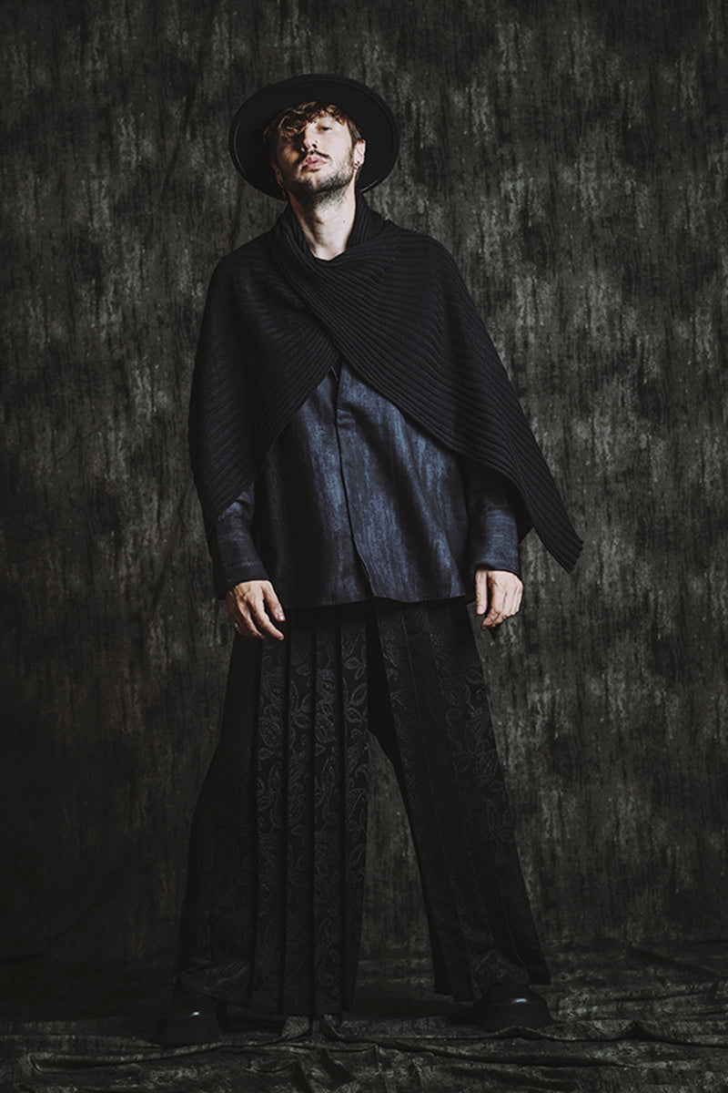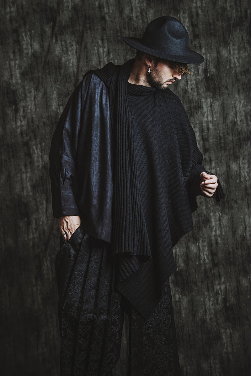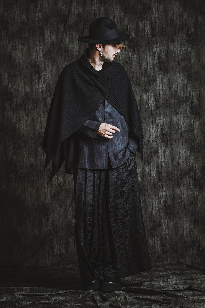 CATALOG 25AW vol5 STYLE04 4WAYツイストニットポンチョ ¥16,280 アンイーブンプリントV/NドルマンスリーブSH ¥14,300 フライスU/N-T ¥8,580 ハカマプリーツトラウザーズ ¥17,600 マウンテンハット ¥5,280 カウレザープラットフォームレースアップブーツ ¥66,000 OTHER STYLE CATALOG ARCHVE CATALOG TOP 2025AWvol5 2025AWvol4 2025AWvol3 2025AWvol2 2025AWvol1