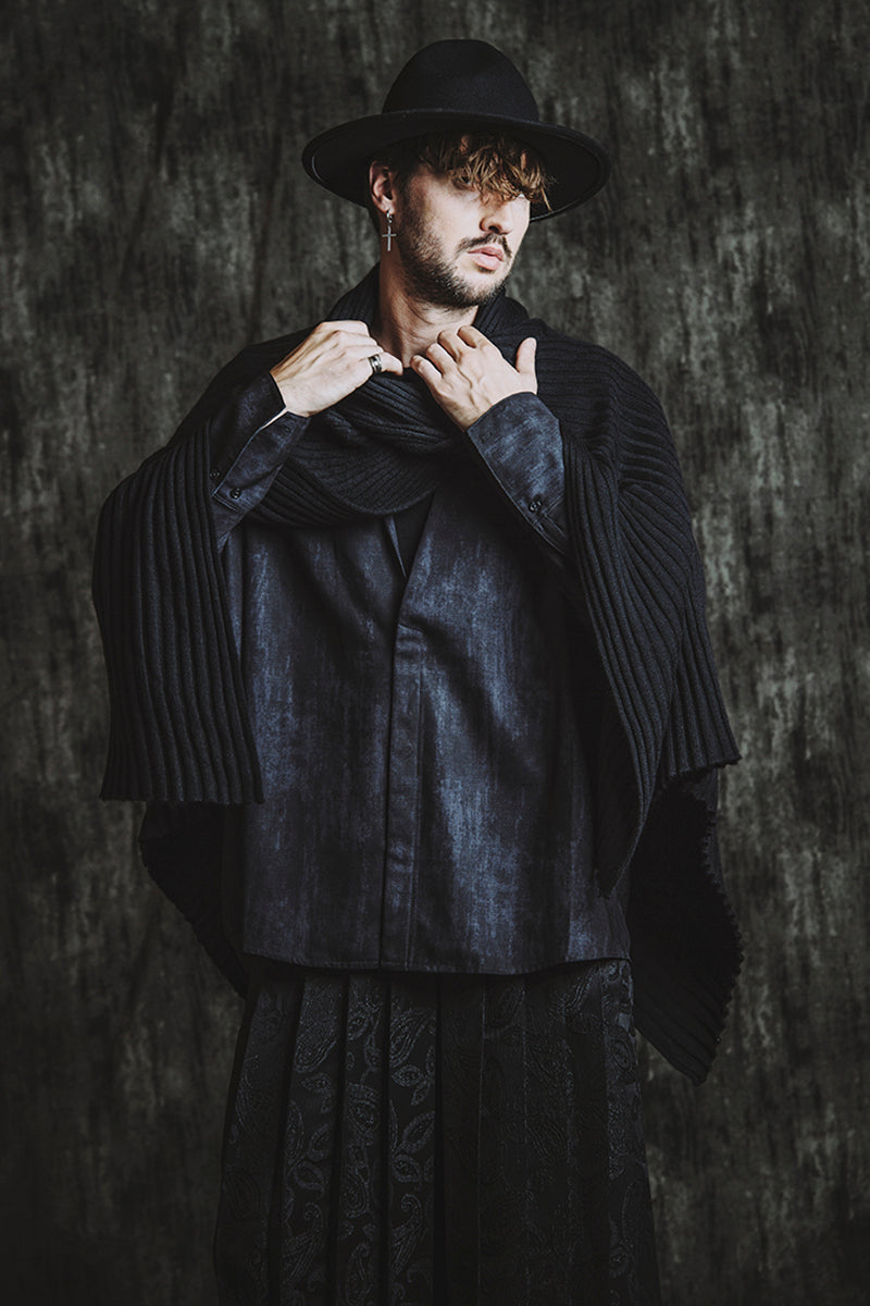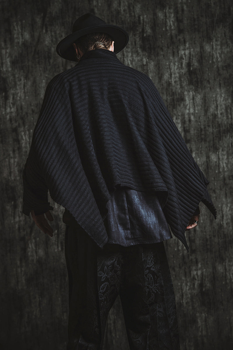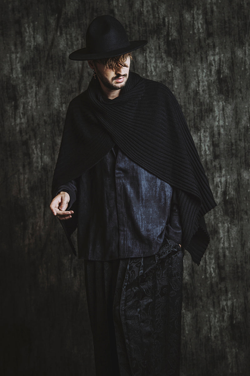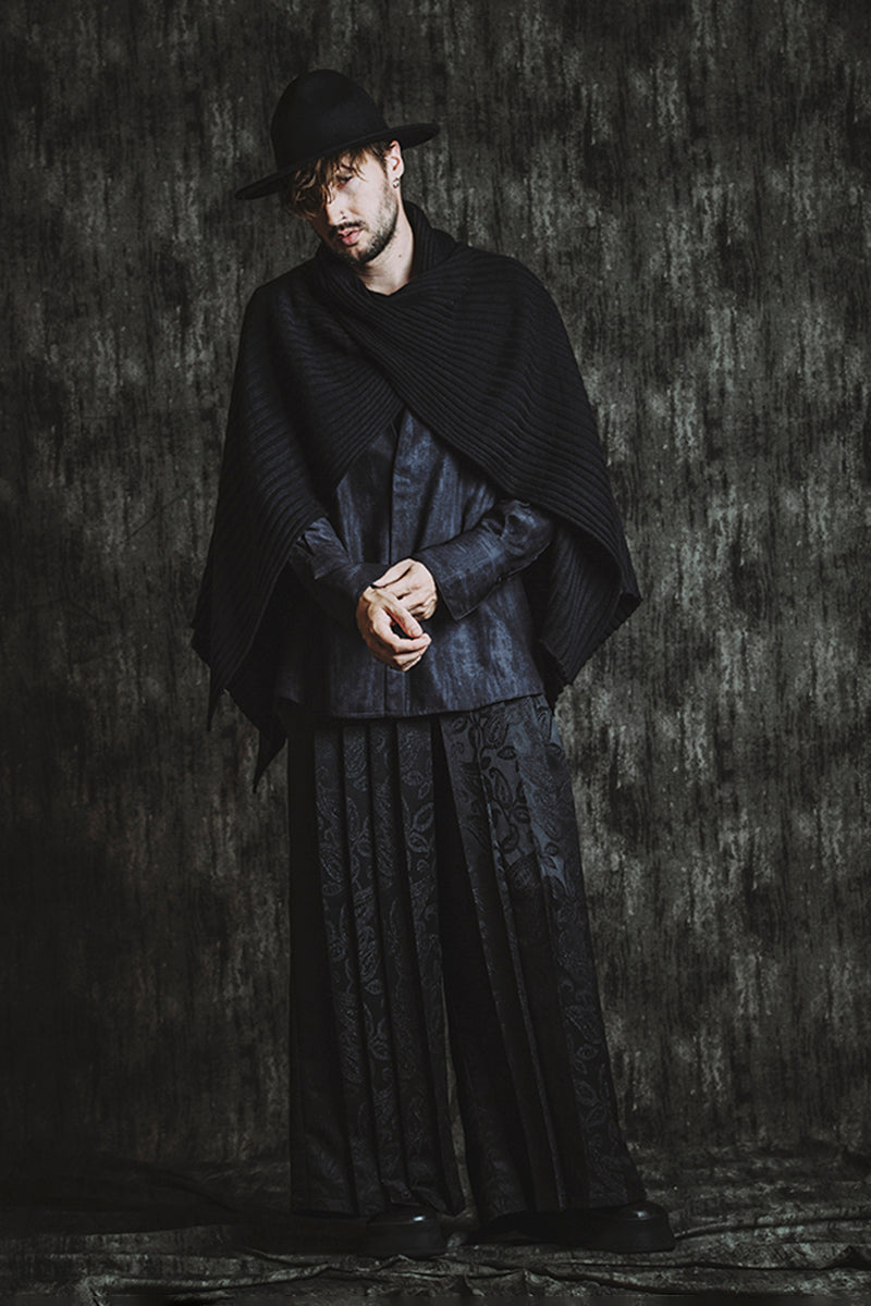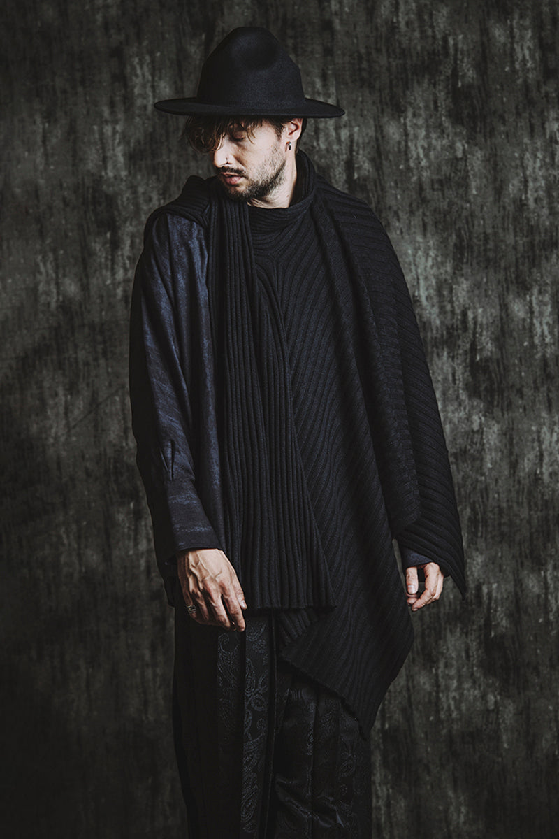 CATALOG 25AW vol5 STYLE04 4WAYツイストニットポンチョ ¥16,280 アンイーブンプリントV/NドルマンスリーブSH ¥14,300 フライスU/N-T ¥8,580 ハカマプリーツトラウザーズ ¥17,600 マウンテンハット ¥5,280 カウレザープラットフォームレースアップブーツ ¥66,000 OTHER STYLE CATALOG ARCHVE CATALOG TOP 2025AWvol5 2025AWvol4 2025AWvol3 2025AWvol2 2025AWvol1