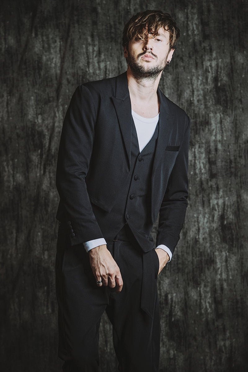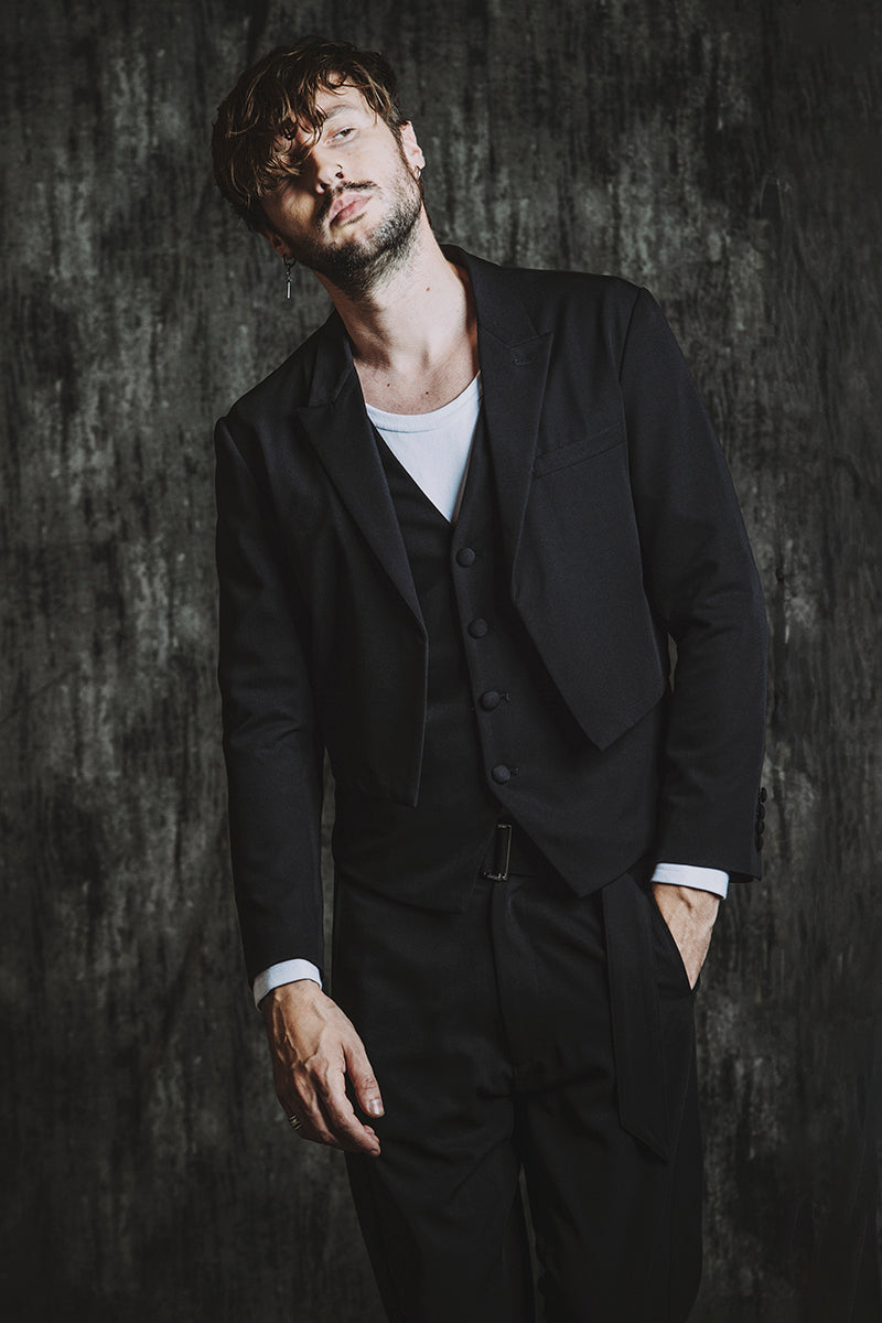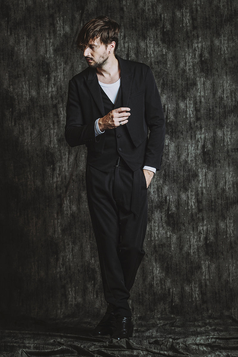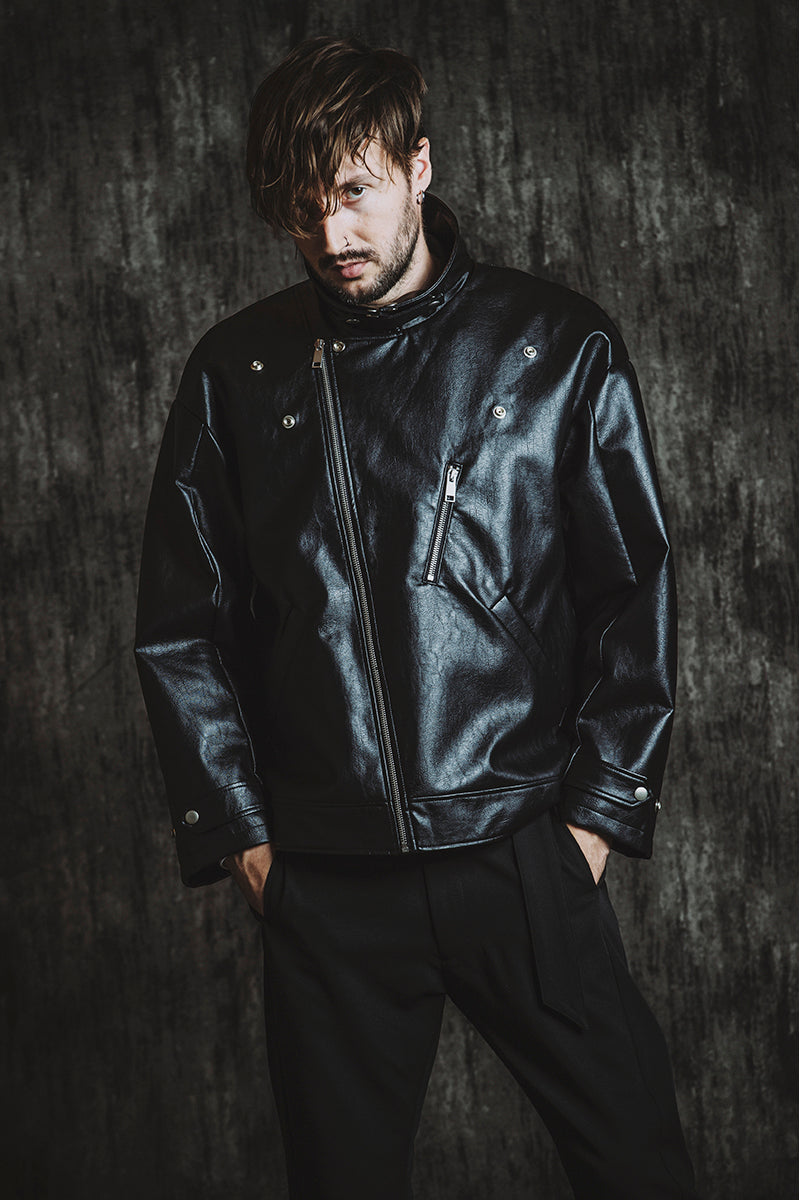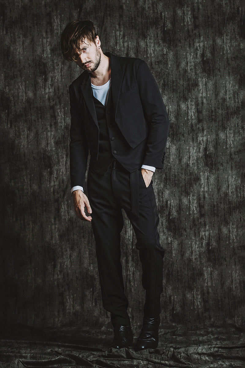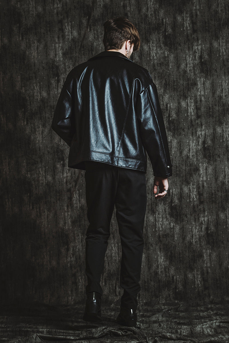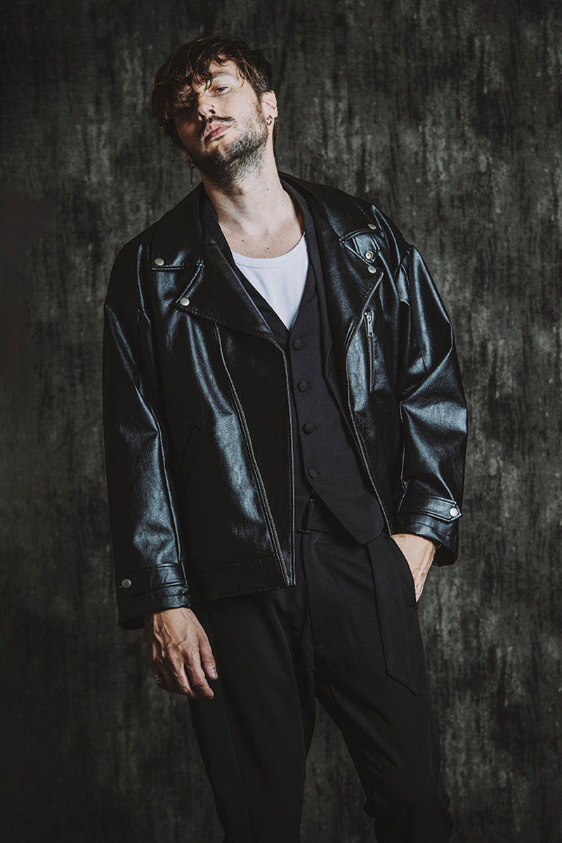 CATALOG 25AW vol5 STYLE08 シンセティックレザーBIGライダースJKT ¥28,600 レイヤードショートJKT ¥28,600 フライスU/N-T ¥8,580 ベルテッドテーパードトラウザーズ ¥17,600 Draped heel boots ¥52,800 OTHER STYLE CATALOG ARCHVE CATALOG TOP 2025AWvol5 2025AWvol4 2025AWvol3 2025AWvol2 2025AWvol1