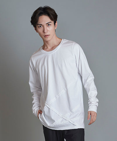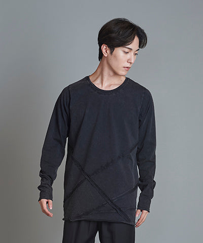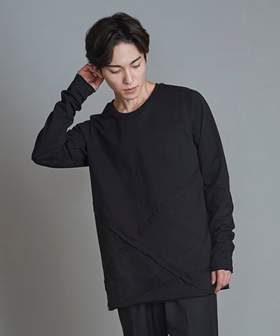 Random seam cut off C/N long sleeve T-shirt