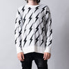 キャッチーなモチーフとしてメンズシーンでも定評のあるサンダーモチーフを総柄で表現したプルオーバーニット。素材は保温性の高いウール、アクリル、ナイロン、ポリエステルを混ぜた4種混の糸を使い暖かみのある質感に仕上げている。従来の伝統的な柄とはまったく異なるアプローチが新鮮な本作はデニムやスウェットパンツとの相性が良くストリートライクな着こなしにマストなアイテムとなっている。