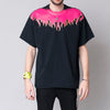 フロントネックライン一面にプリントされた印象強いプリントT。フレイムをモチーフとした本作はグラデーションで色味を表現しアウトラインには箔プリントでクッキリとしたシルエットを描いている。