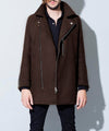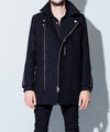 ライダースのディテールを削ぎ落としミニマルな雰囲気に仕上げたコート。