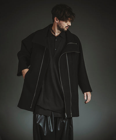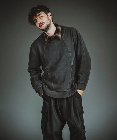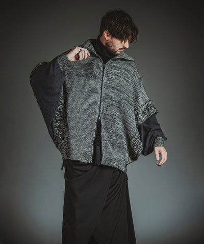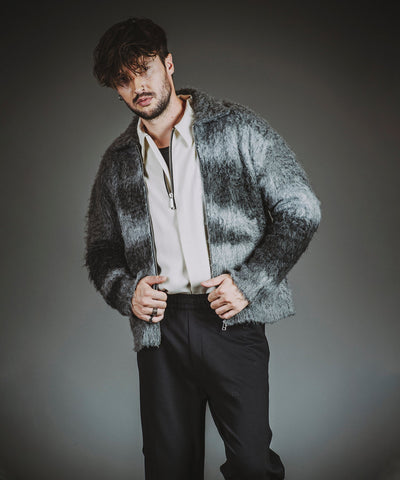 The use of plain knit and pile knit changes the texture of the yarn, and by cutting off the outline of the star motif, the rough atmosphere is enhanced, emphasizing the grunge rock feel.