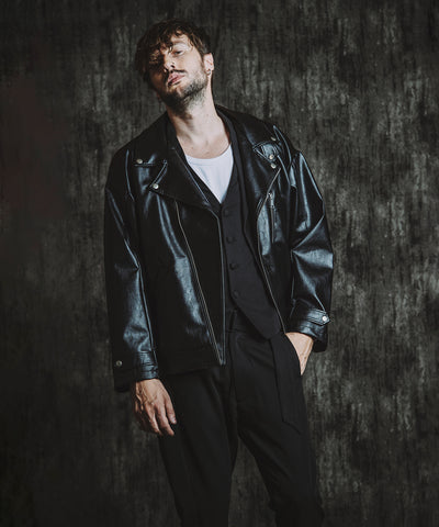 ジャケットとベストをレイヤードした立体感のあるデザインが特徴のショートジャケット