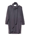 首周りを装飾するナローストールと長めの着丈にやや深めのスリットが程良いアクセント。