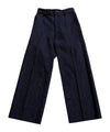 サイドラインに細い切替ラインを施し縦に真っ直ぐと伸びるワイドトラウザーズのシルエットを強調させた一本。