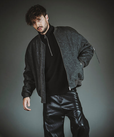 インパクトのある大柄のフラワーモチーフが目を引くニットMA-1ブルゾン。