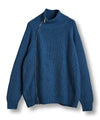 アシンメトリーに配置したファスナーデザインが目を引く変則的ドライバーズニットカーディガン。
