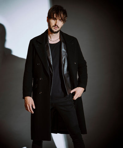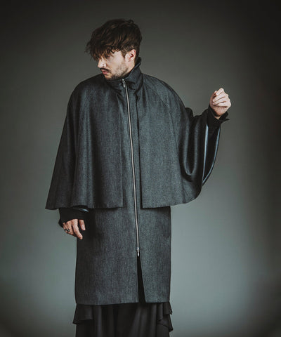 ハイカラーベストの上にケープを纏った2way仕様のインバネスコート。