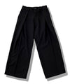 トレンドのタックパンツに捻りを加えた本作は2本のタックが交差する様にデザインする事で通常のタックでは得られない立体的なフォルムを表現。