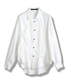 オーバーサイズのシャツをベースに不規則なタックを落とし込んだ1枚。タックによる奥行きが生まれ立体感のある表情に仕上がっている。