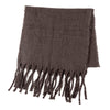 弾力性があり柔らかい風合いのモールヤーンはルームウェアなどにも使われるリラックス感の強い素材。深みのある色味で季節感を演出してくれるストールとなっている。