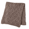 フリンジを付けずシンプルに整えた大人の雰囲気が漂うストール。フィッシャーマンニット調のざっくりとした編み模様が冬の雰囲気を高めてくれる。