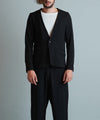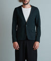 コンパクトなシルエットでジャケットの持つキチンとした雰囲気を出しつつラペルはなくしノーカラーにする事で適度な抜け感を表現した一着。