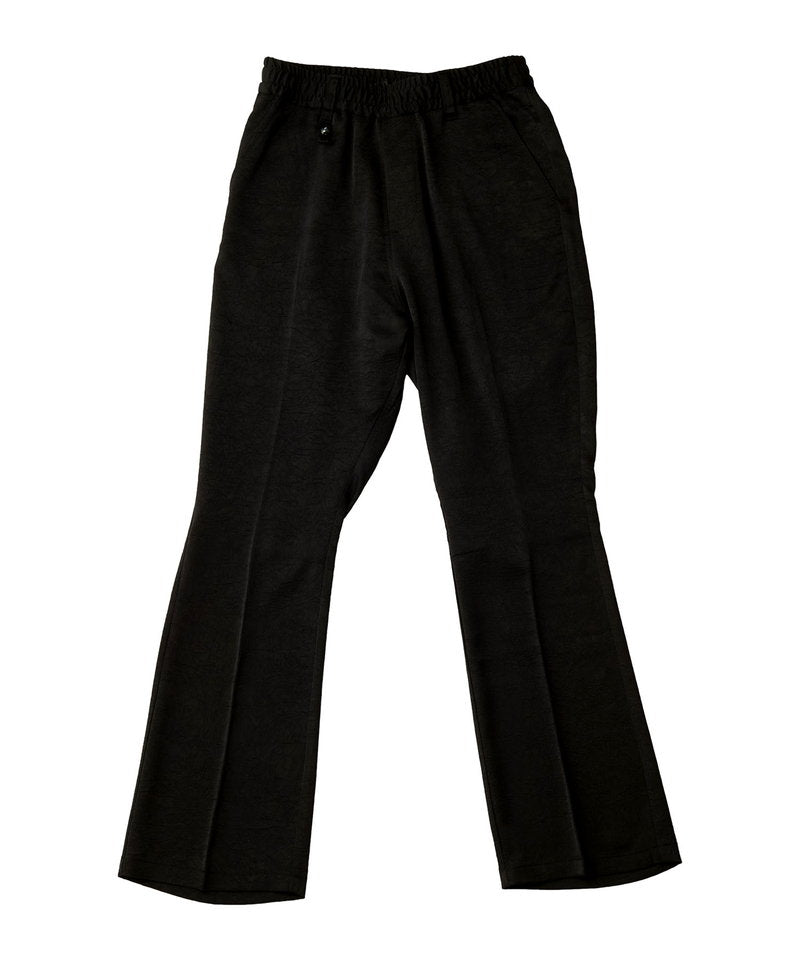 生地に凹凸があり自然なシワ感と光沢を帯びた上品な風合いのギャップが特徴のフレアパンツ。