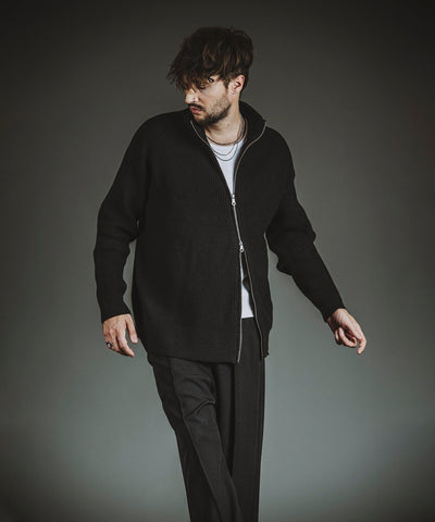 ドロップショルダーによる快適な動きやすさとカーディガンの羽織りやすさはデイリーウェアとして重宝できる一枚。