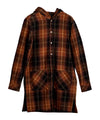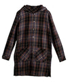 アメリカンカジュアルの代表的アイテムとして外せないチェックシャツをNO ID.らしくアレンジしたロングシルエットのチェックシャツ。スキニーシルエットのパンツと合わせる事で縦のラインを強調しスマートな印象を与えてくれる。身頃に後付けされたパッチポケットや一体式のフードにより程よいカジュアルさと抜け感をプラスしている。