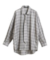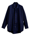 継続して展開しているオフィスモードなネクタイ付シャツ。肩線の無いドルマンスリーブ