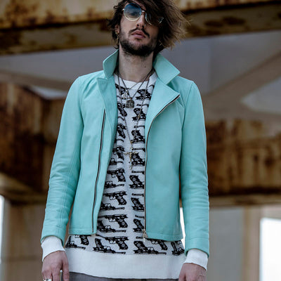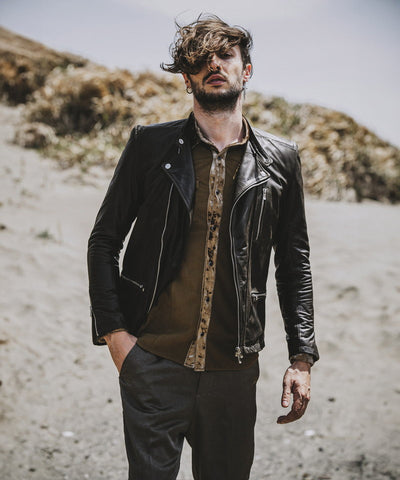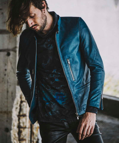 生後一年以上の羊の革をベースにクロム鞣しを施したレザーブルゾン。