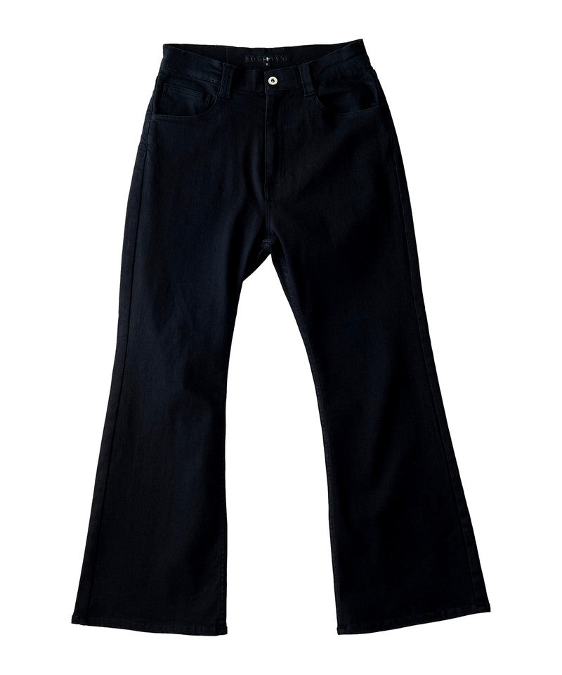 NO ID.の新定番スキニーデニムと同じ生地を使い一般的なストレッチデニムを遥かに超える伸縮性を効かせたフレアデニム。