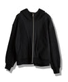コットン裏毛とコットンニットによる異なる質感を落とし込みネックラインを覆う様な高襟と特徴的な切替で個性をプラス。